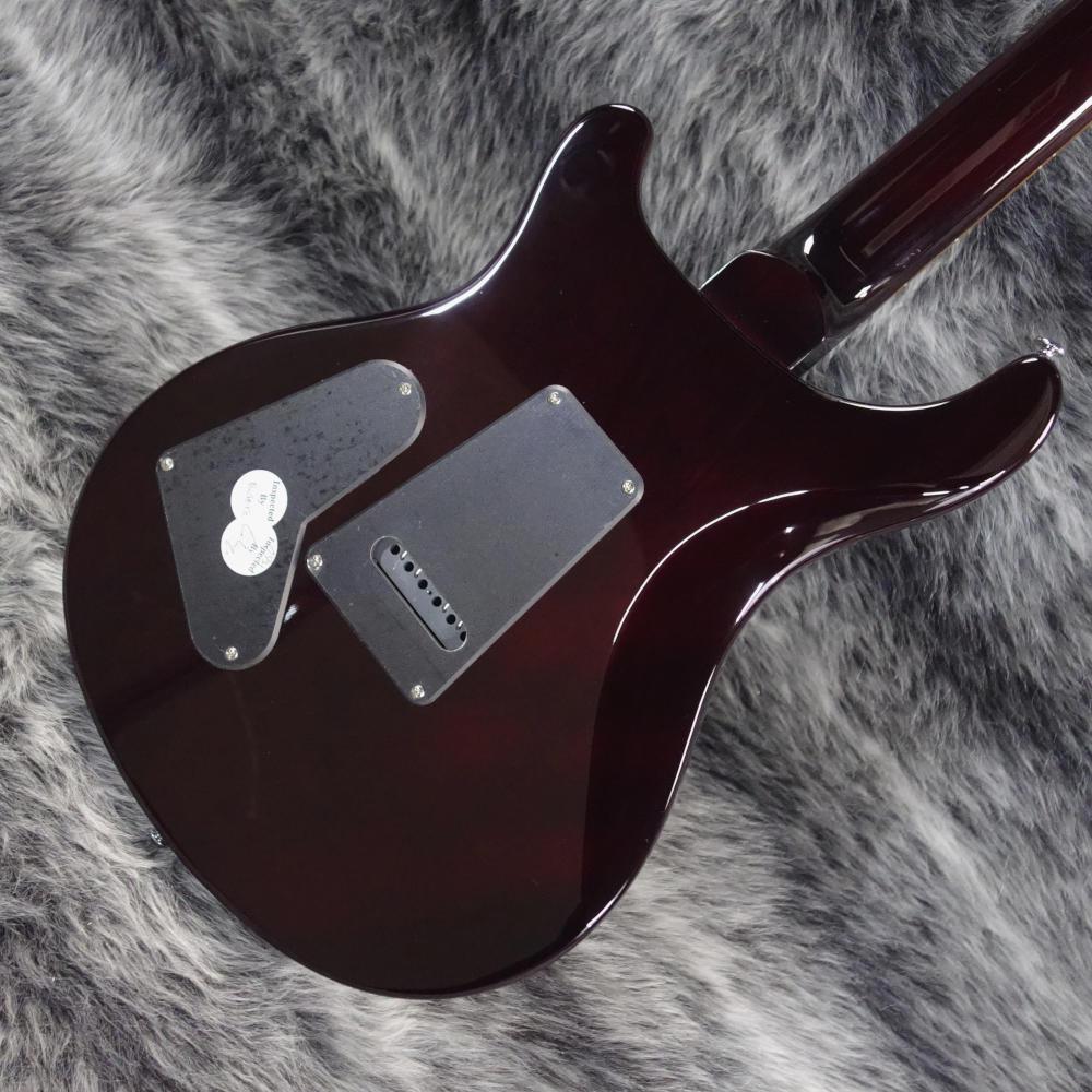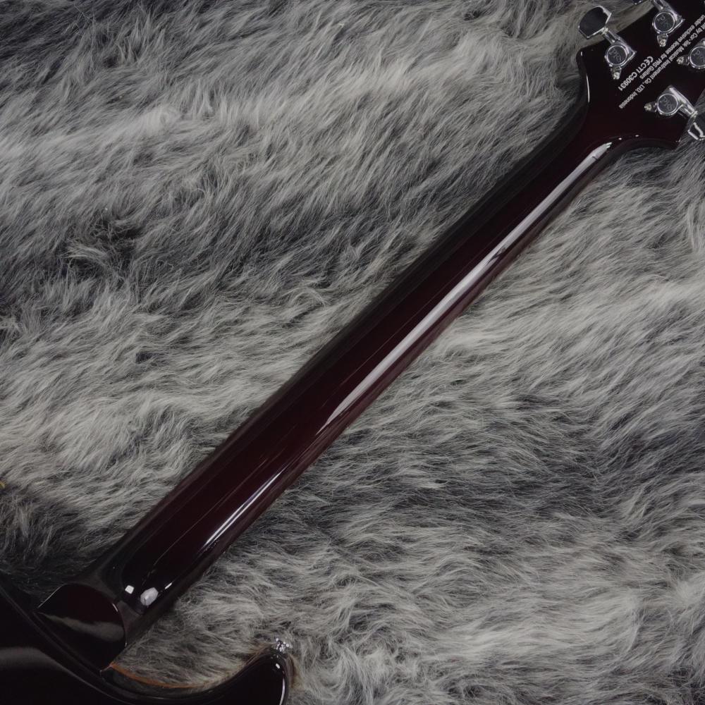均等で美しい杢のフレイムメイプルトップにクールなブラックチェリーカラーがマッチした一本が入荷しました。
