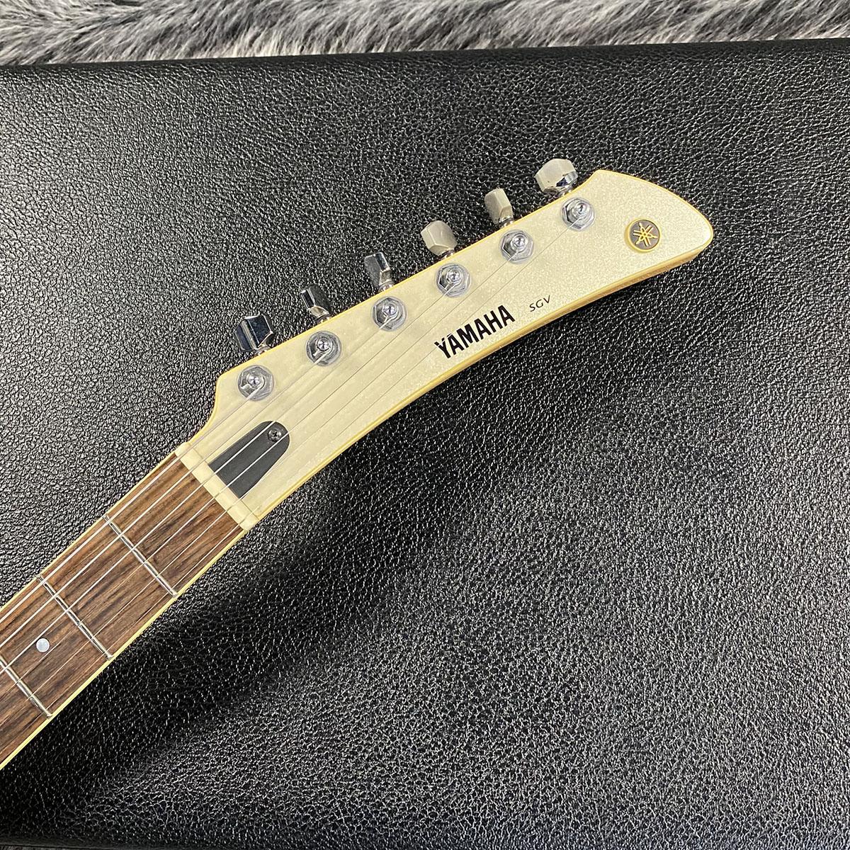 オリジナルのトレモロユニットを搭載した独特のボディシェイプにカラーは高級感のあるパールスノウホワイト。