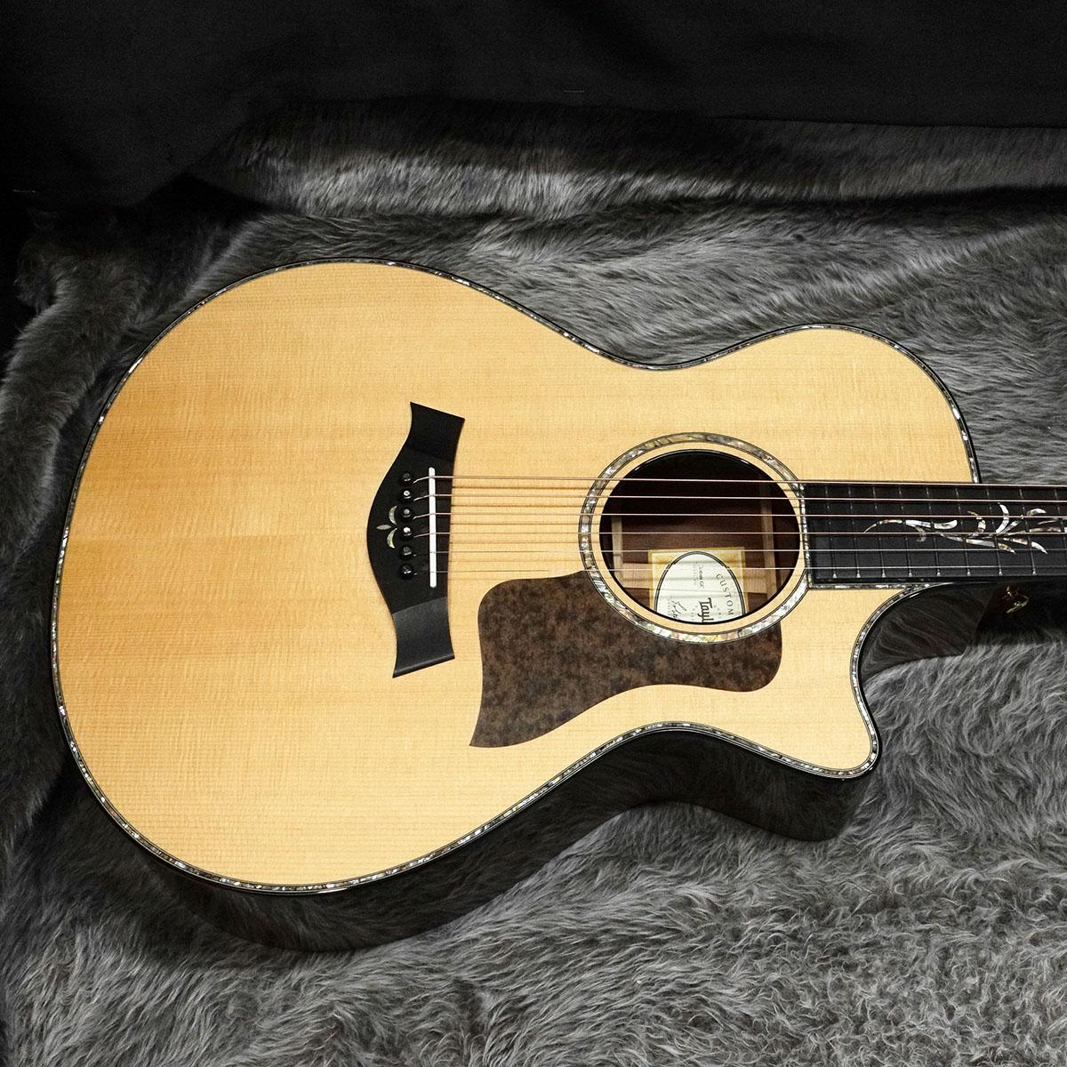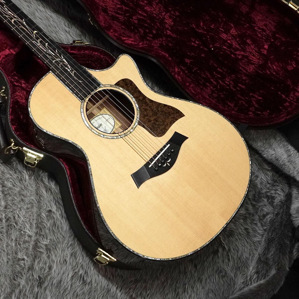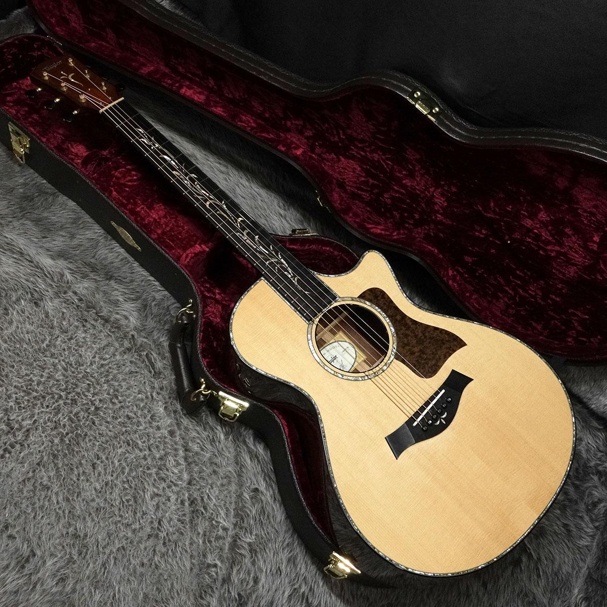 トップ材のTaylorお馴染み「Lutz Spruce」はカナダの一部の地域でのみ採れる木材でシトカスプルースとイングルマンスプルースの自然交配種。シトカプルースの弾力性とイングルマンスプルースの美しくきめの細かい白さを持ち、パワフルでボリュームのあるサウンドが特徴。サイド&バックには「ボリビアン・ローズウッド」が採用されています。代替材としての印象のある木材ですが、ハカランダと比べても聴き劣りしないクリアで切れのあるサウンドが特徴です。本機にはその特徴が非常に強く出ており、優しいピッキングでも鋭いサスティーンのしっかりした鳴りとなっています。