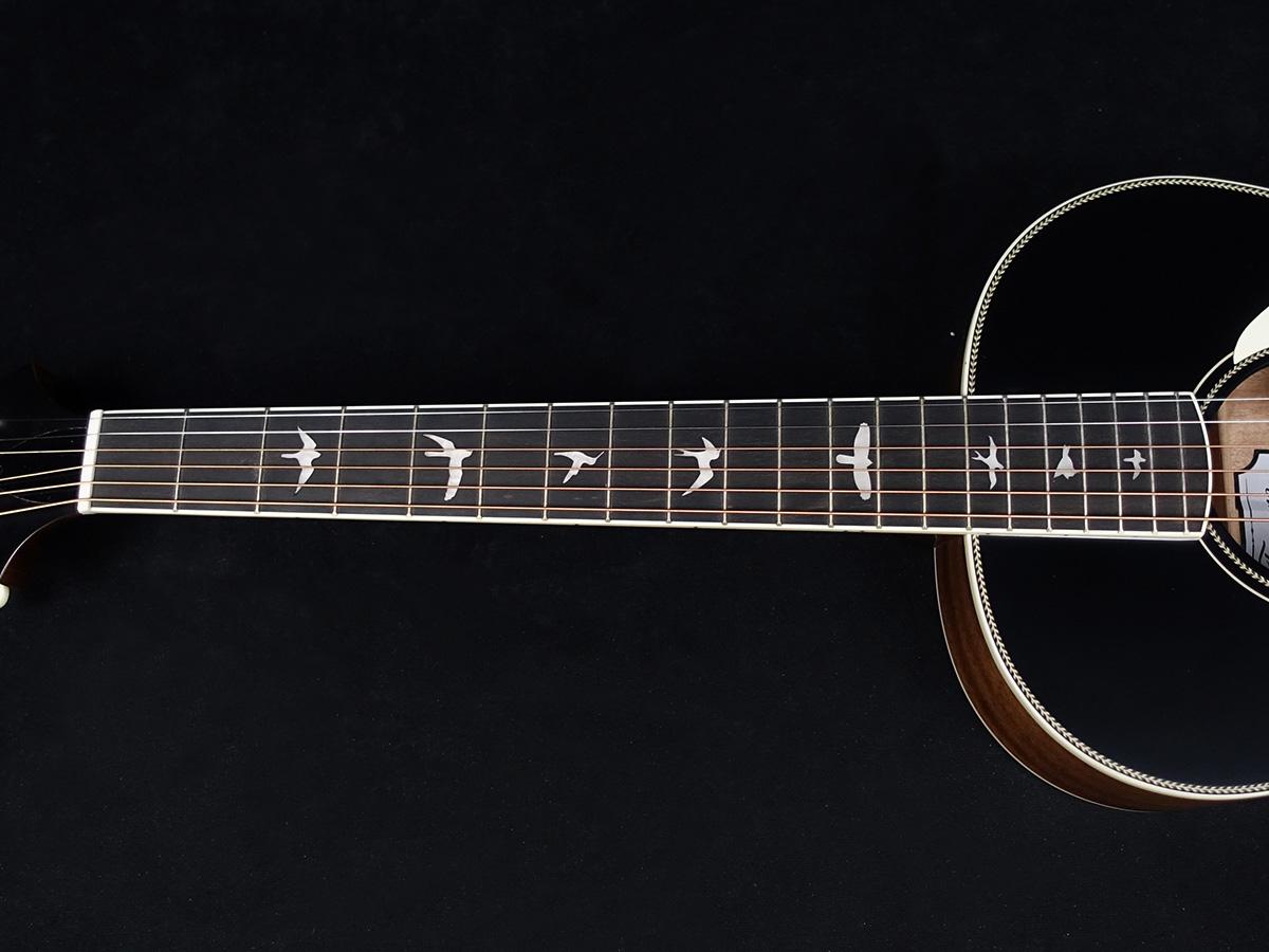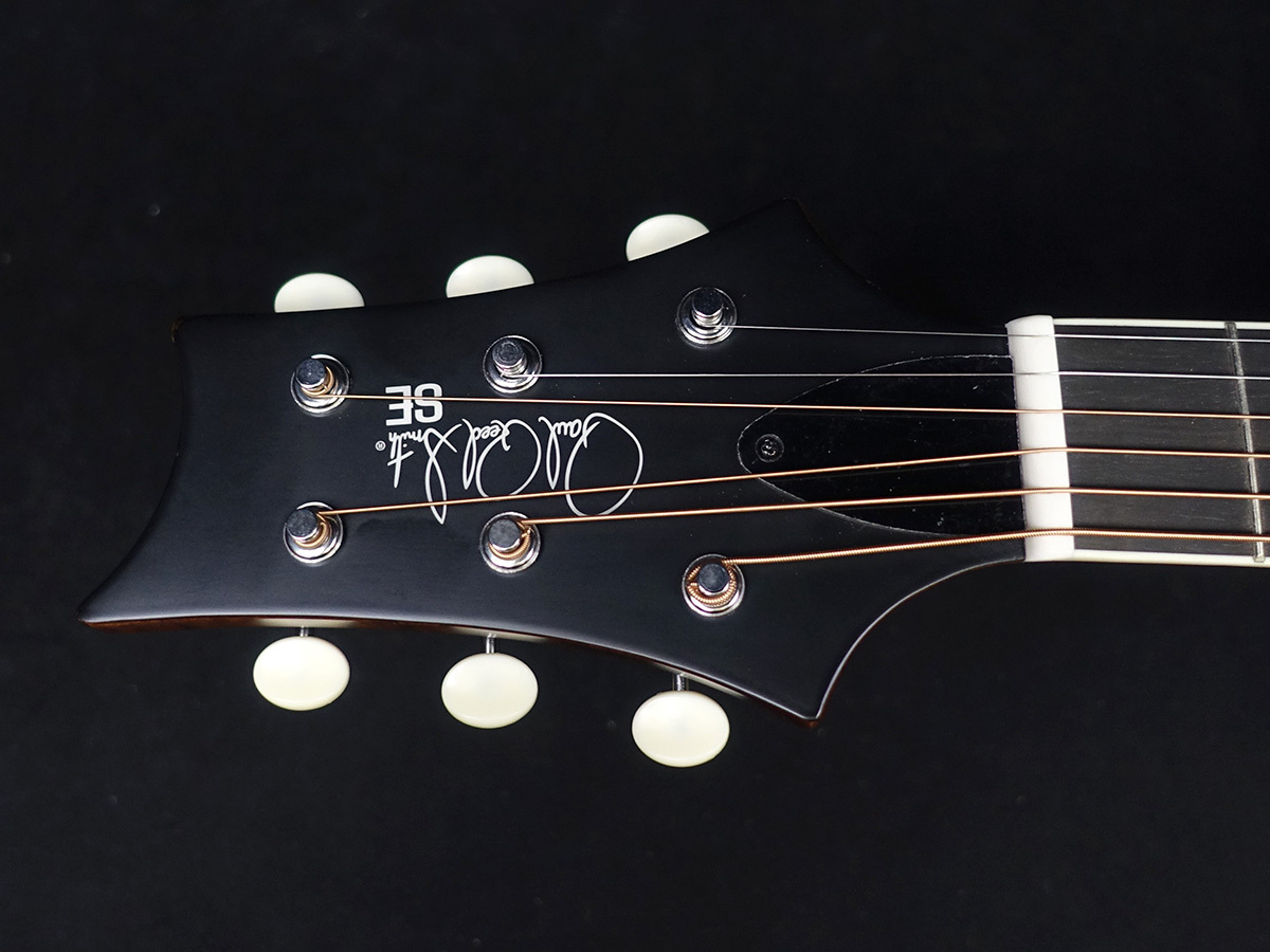 PRSのトレードマークであるバードインレイとヘッドストックのデザインはそのままに、マットな質感のボディ、ヘリンボーン柄のロゼット、バインディングとお洒落で落ち着いたルックスも魅力的。