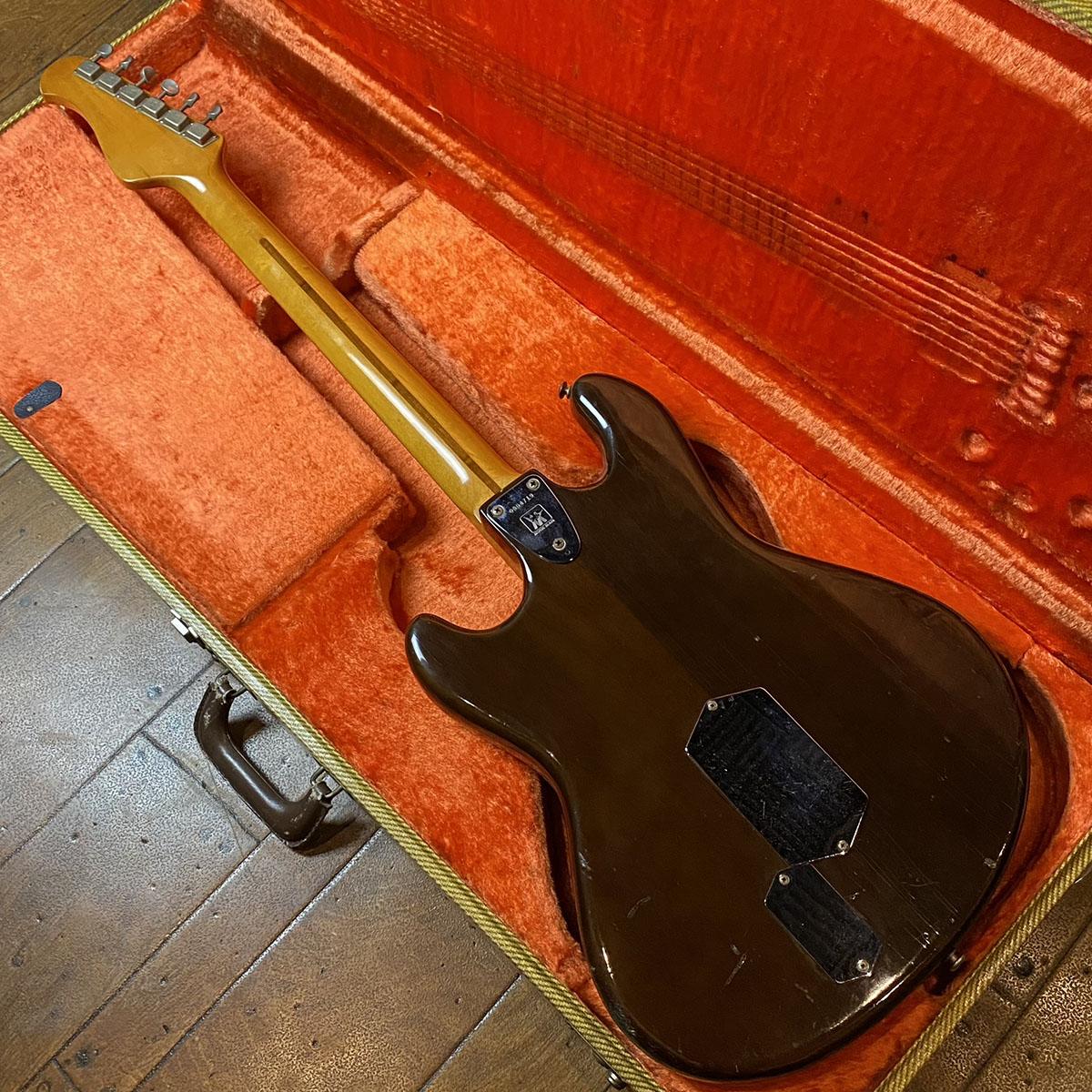 カタログスペックではスティングレイIIはハードテイルブリッジですが、本機は当時ストラト等のトレモロ搭載モデルを求める声が非常に多かったため、代理店が国内限定で”T.S.Vibrato”を搭載し販売した特別な1本です。