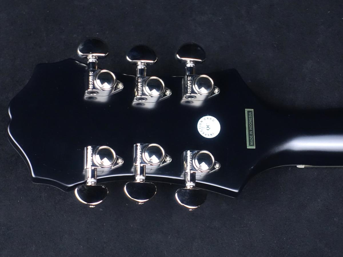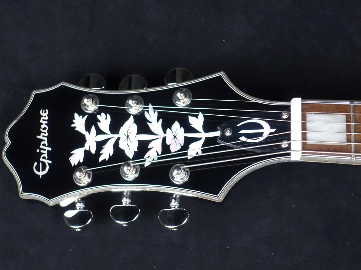 クリップド・ダブ・ウィング・ヘッドストックに施されているマザー・オブ・パールのエピフォン・ロゴとツリー・オブ・ライフのインレイ、Grover Rotomaticチューニング・マシン、2基のEpiphone SwingBuckerピックアップを搭載し、それぞれにボリュームとトーン・コントロールを備えています。