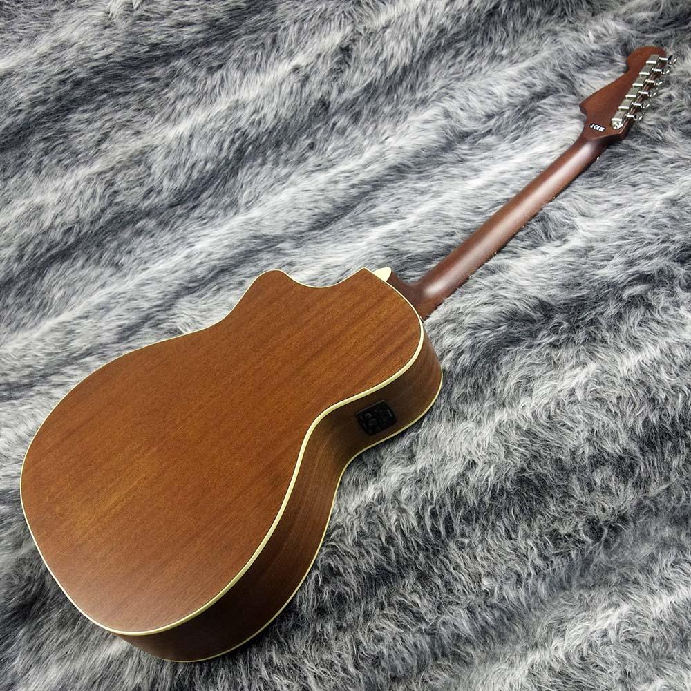 抱えやすいやや小ぶりなサイズのボディはトップにスプルース単板、サイド&バックにはマホガニーを使用したカッタウェイデザイン。