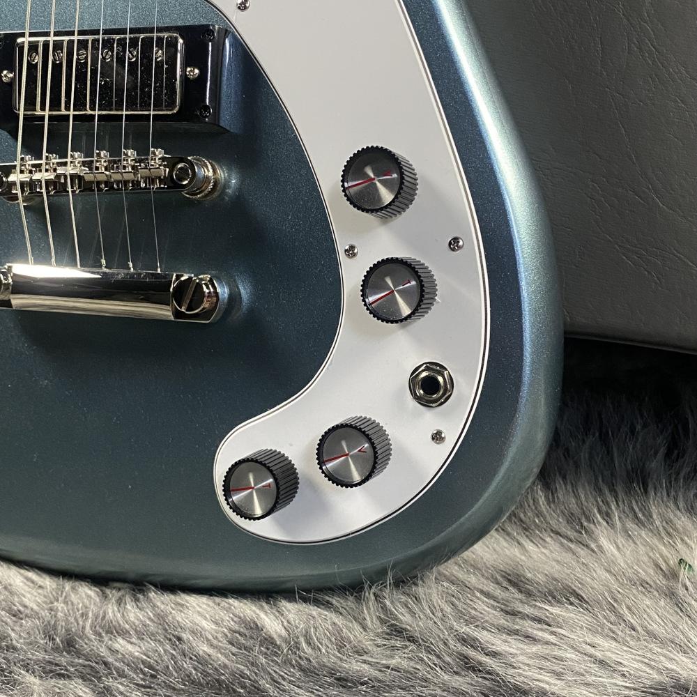 ヘッドストックは有名な「バットウィング」スタイルでデザインされ、メタルボタン仕様のウィルキンソン製の6連チューナーを搭載。