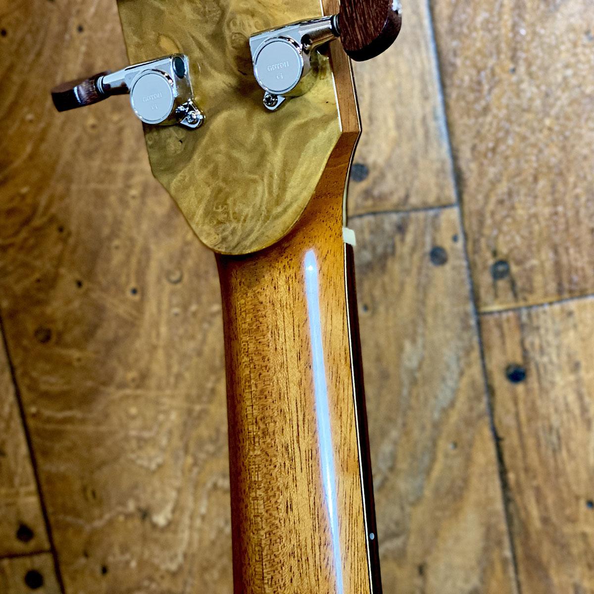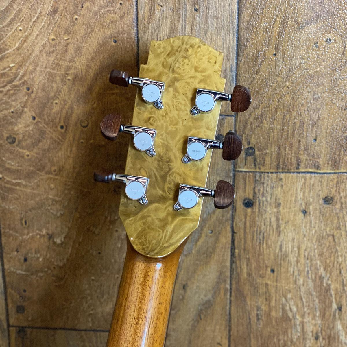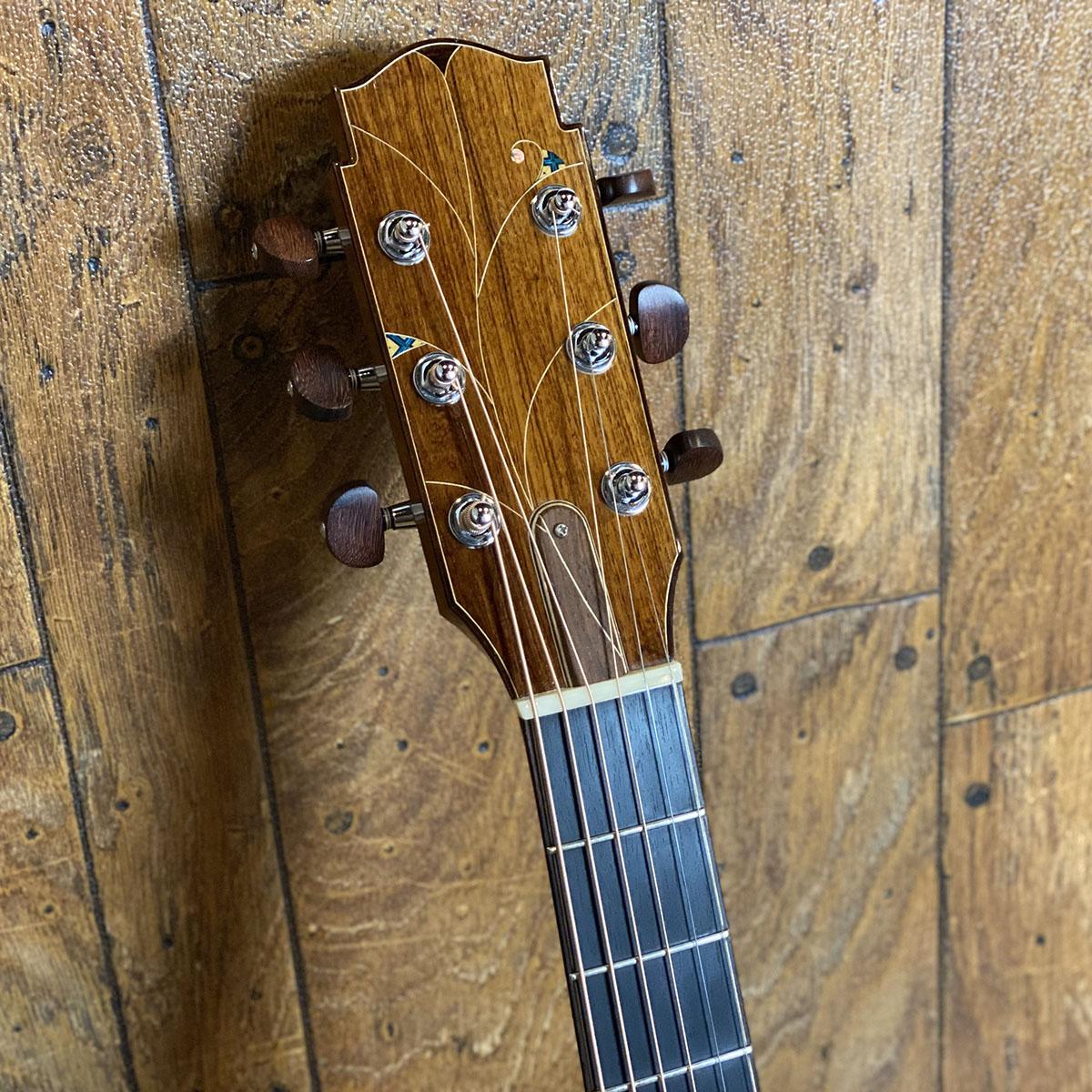 ボディトップにヨーロピアンスプルース、サイド&バックに貴重なホンジュラスローズウッドを使用したカッタウェイボディ。