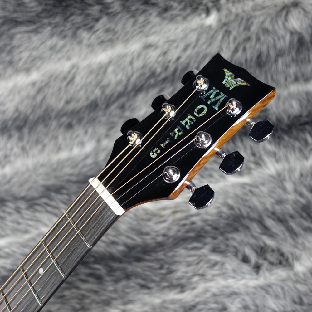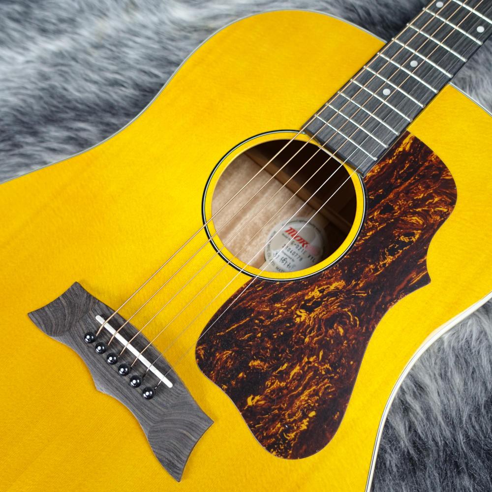 往年のフォーク世代にも人気の高い、モーリス伝統のMGスタイルのボディーデザインに美しい木目のフレイムマホガニーを採用したモデル。