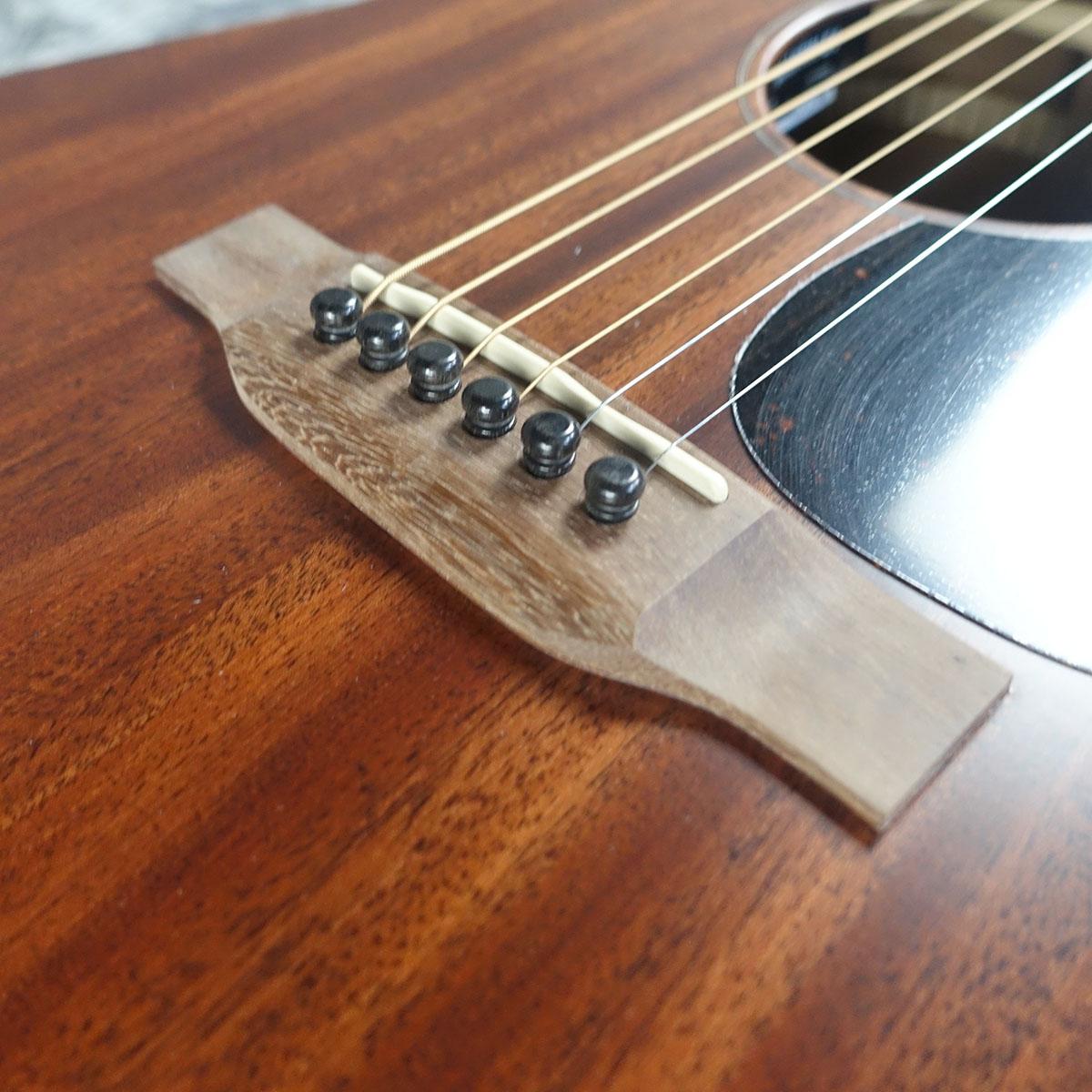 トップ材にマホガニー単板、サイド、バック材にサペリ単板が使用されていて、明るい高音とパンチの効いた中音域が特徴的です。