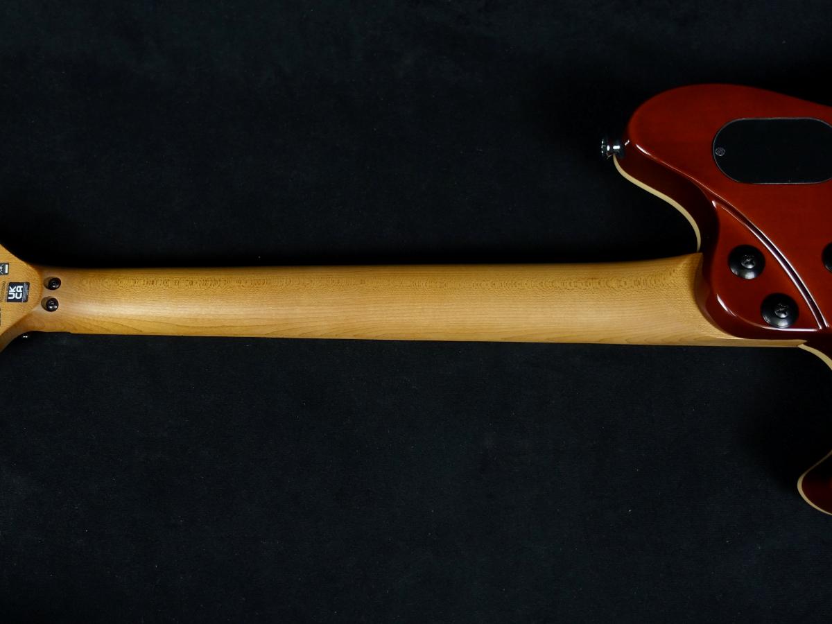 エネルギッシュなリフとリード音に対応する12インチ~16インチコンパウンドラジアスのベイクドメイプル指板には22本のジャンボフレットとブラックドットのインレイが施されています。