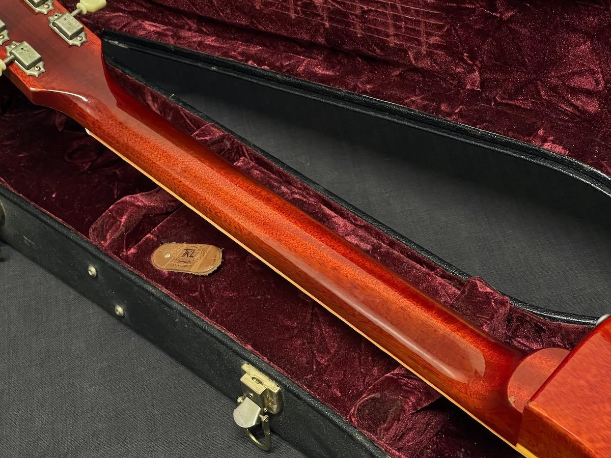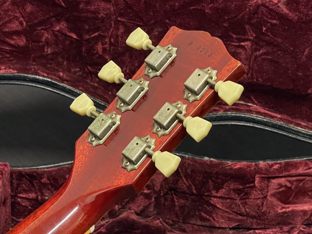 ピックアップはサウンド傾向から恐らくバーストバッカー(エイジドピックアップカバーは恐らくオリジナルから移植)、コンデンサはオールドバンブルビー、テールピースは社外アルミテールピースへ交換されていますが、その他はオリジナルコンディション。