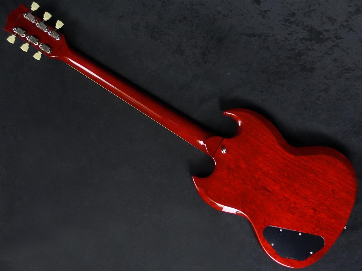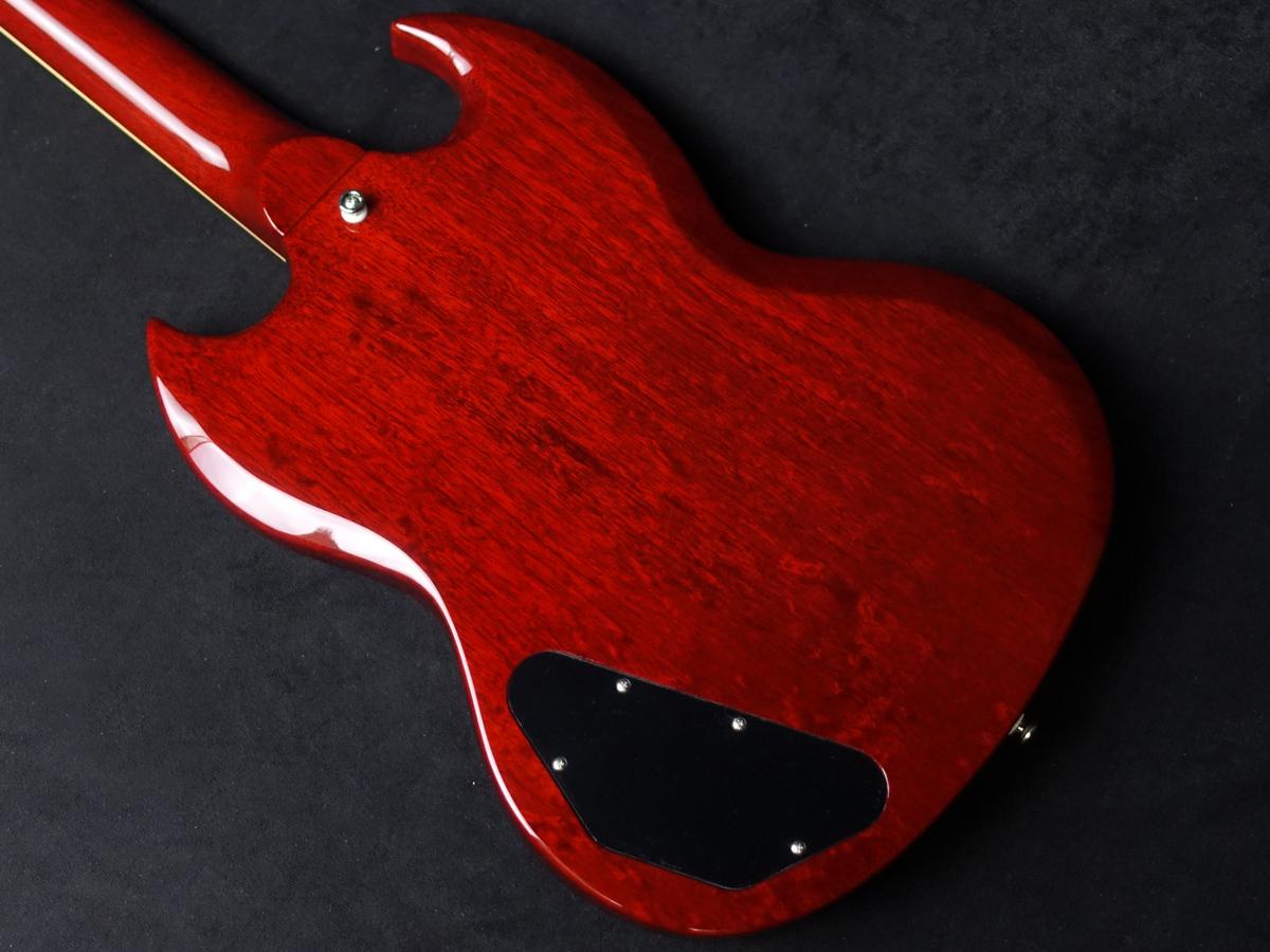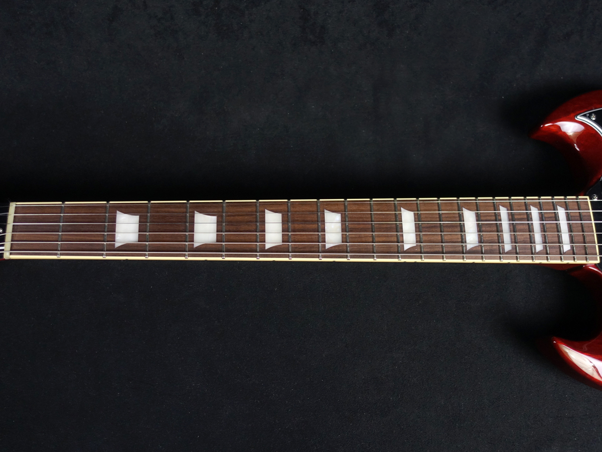 2ピースマホガニーボディ、1ピースマホガニーネック、ローズウッド指板という定番スペックを採用したオーソドックスなSGタイプ。