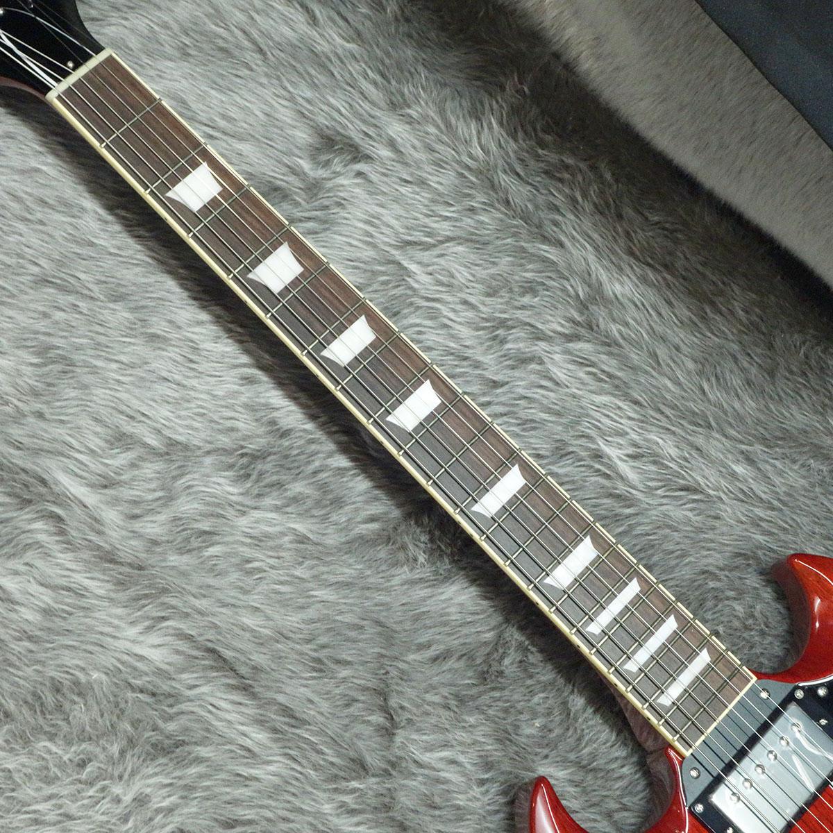 2ピースマホガニーボディ、1ピースマホガニーネック、ローズウッド指板という定番スペックを採用したオーソドックスなSGタイプ。