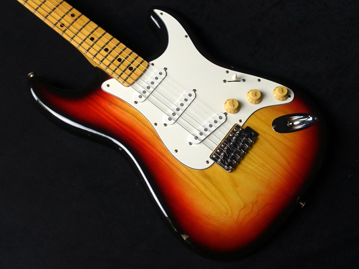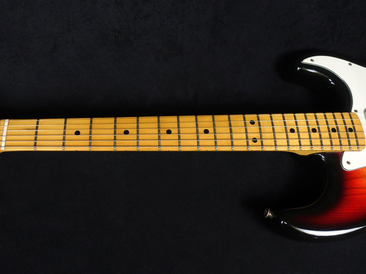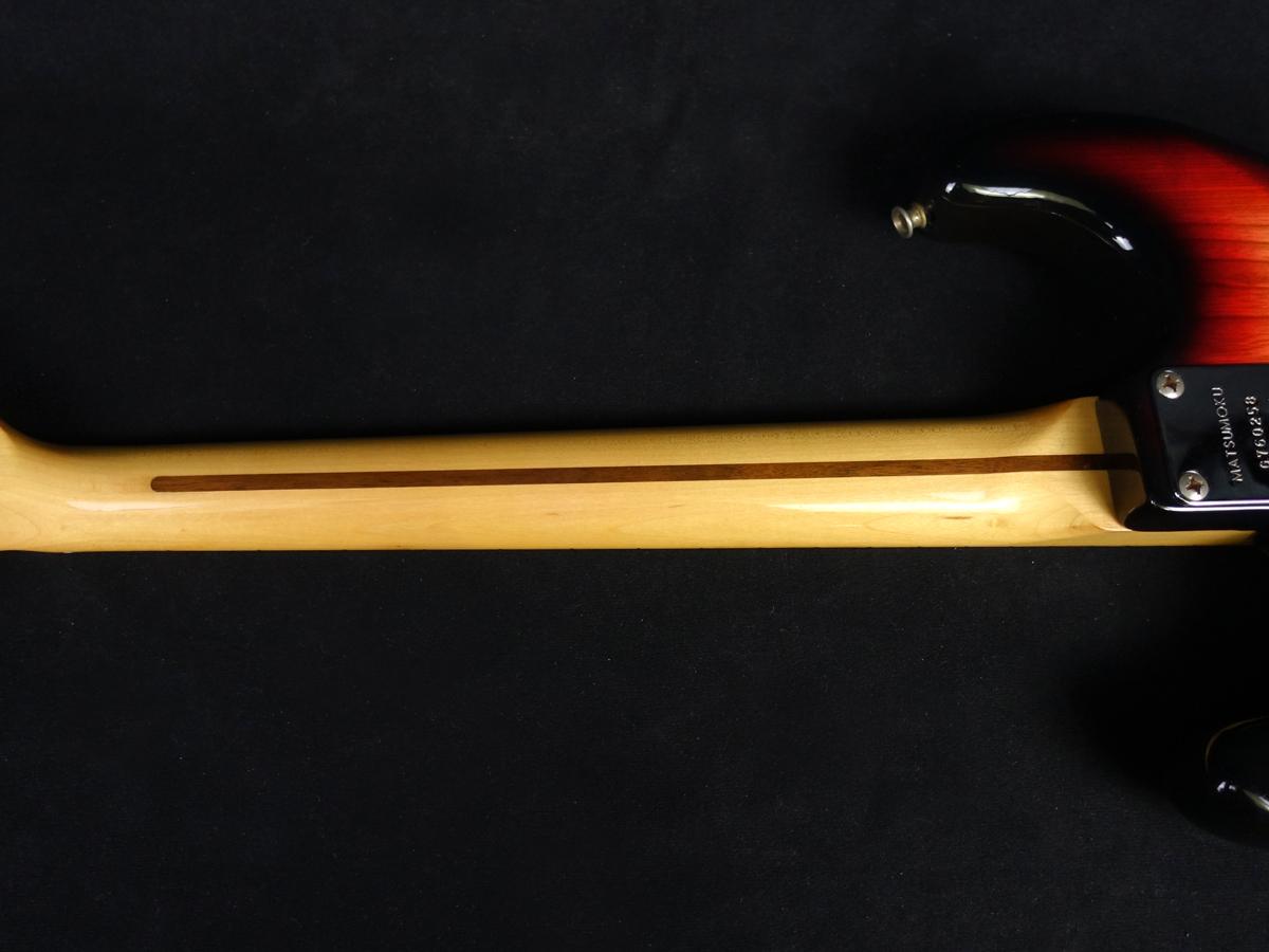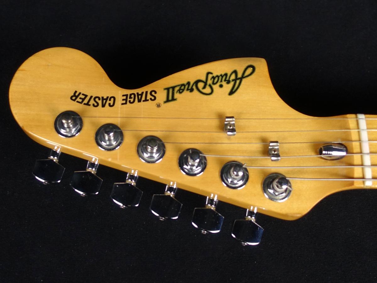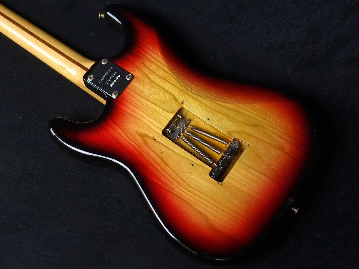 本機はラージ・ヘッド、4点止めブレット・ナットのメイプルネックといった、70年代のジャパン・ビンテージ・ストラト仕様、ストラトキャスタータイプです。