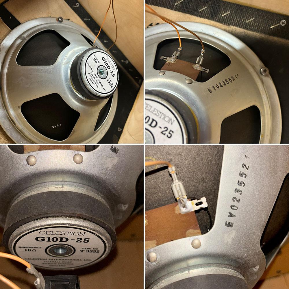 スピーカーは、CELESTION G10D-25を2基搭載。小型ながらもよく歪み、自宅用であれば十分パワフルなサウンドを楽しめます。