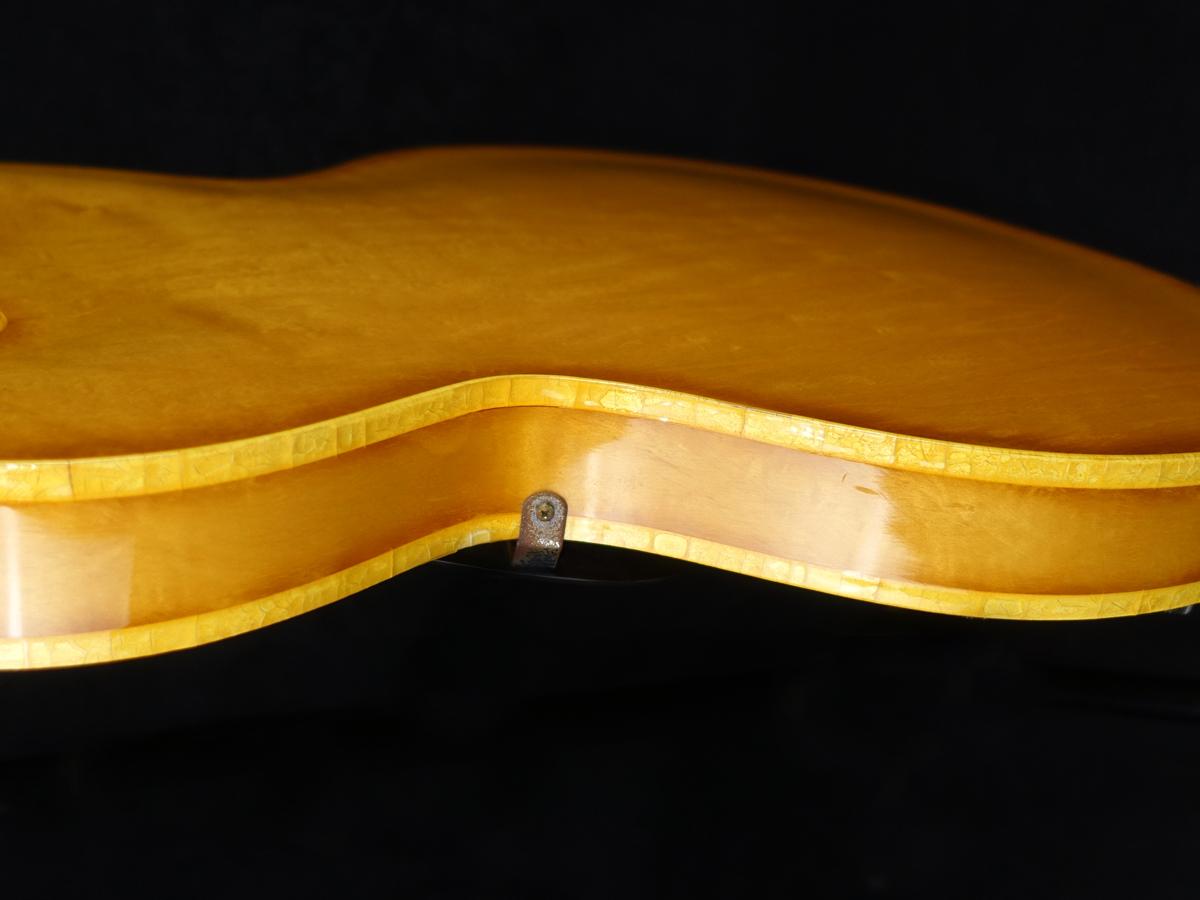 アーチ型のメイプルトップ/バッグボディにセットネックディープジョイント仕様の3Pメイプルネック、ローズウッド指板を採用したウッドマテリアル。