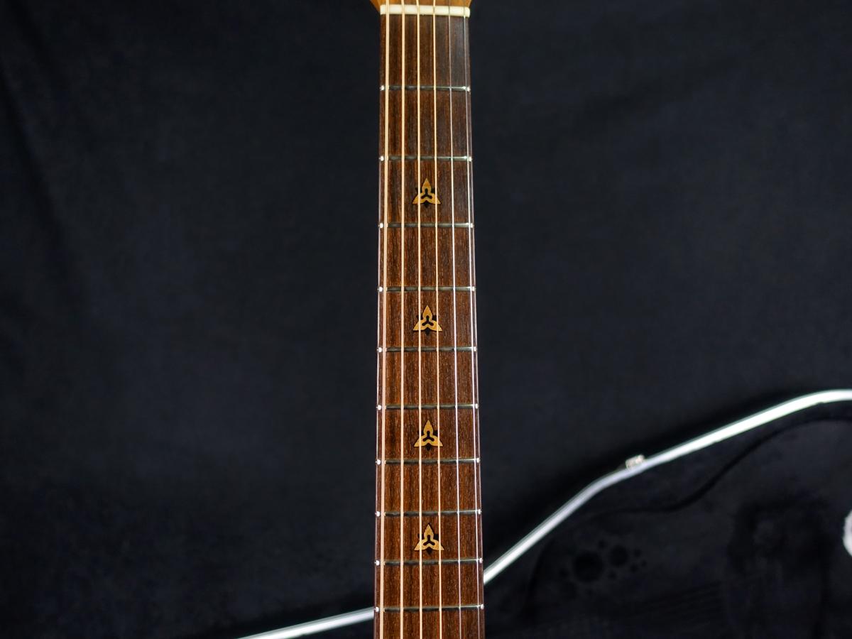 OvationやAdamasではよく見受けられる症状ですが、ネックの元起・波打ちが見受けられ、元起に伴いジョイント部のネックヒール部分にごく僅かに隙間が生じており、
