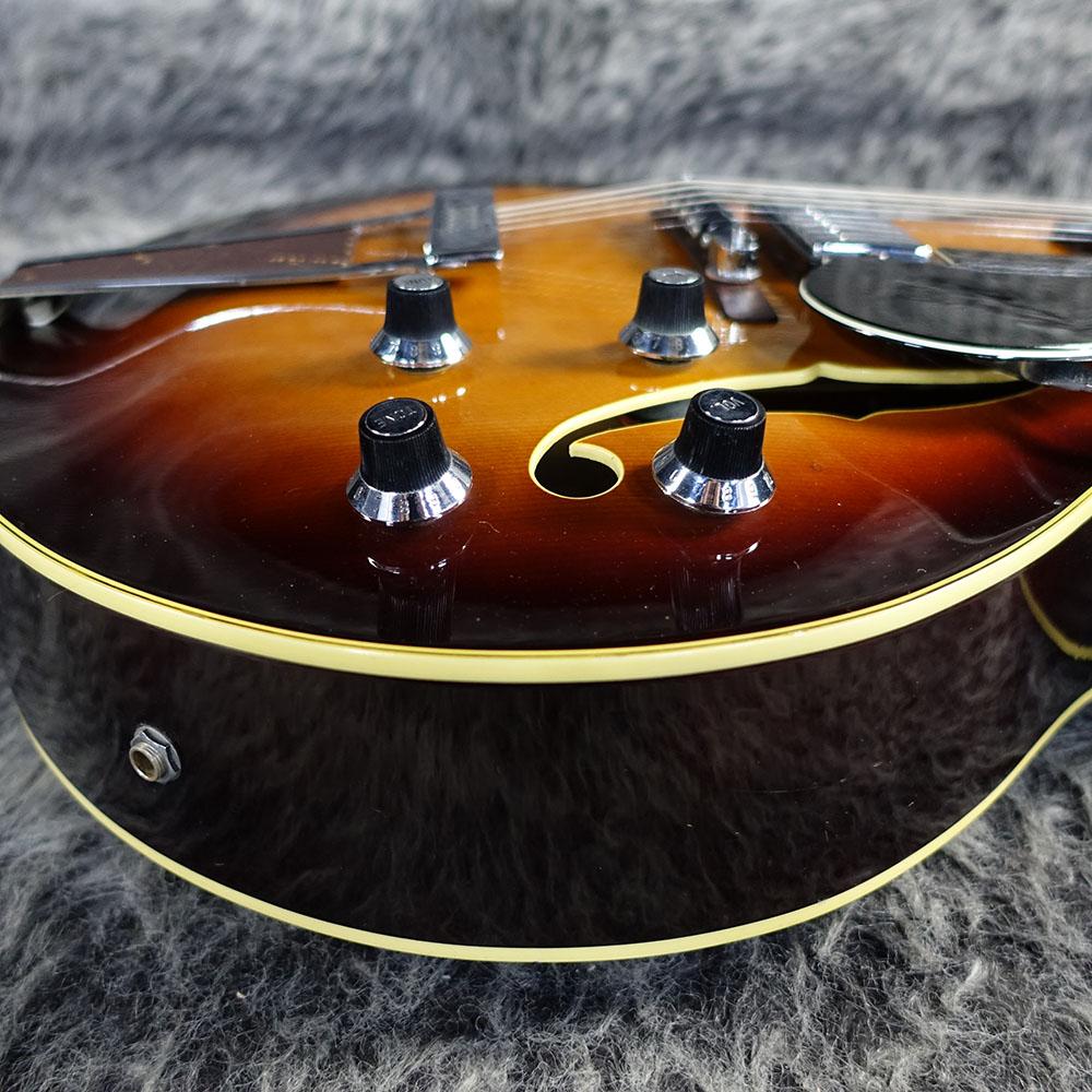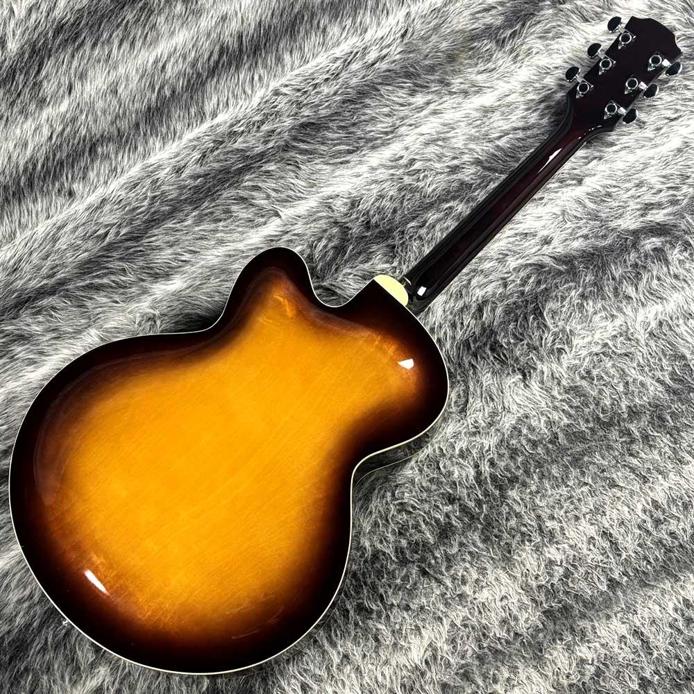 スプルーストップにメイプルのサイド&バック、メイプルネックにローズ指板とジャズらしい暖かみのある音が出せそうなスペックです。