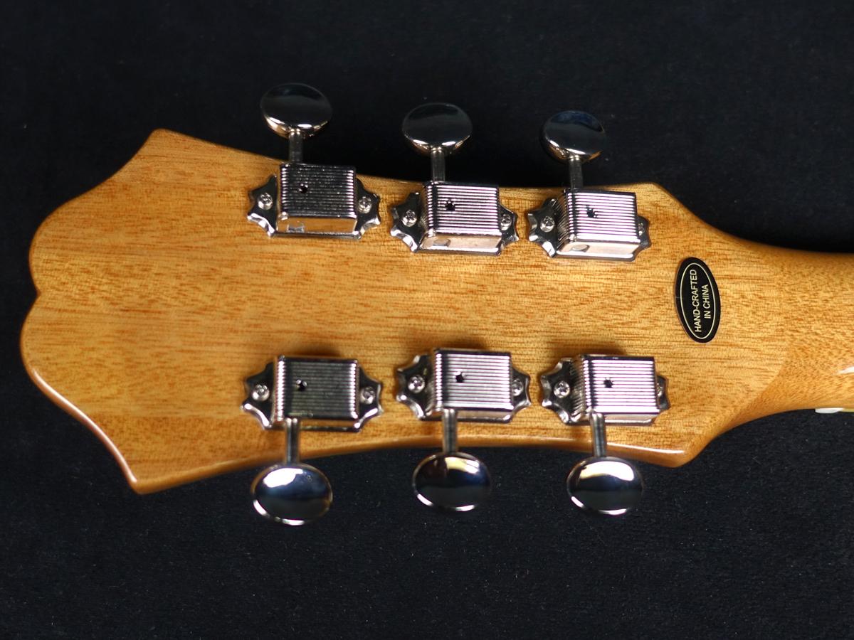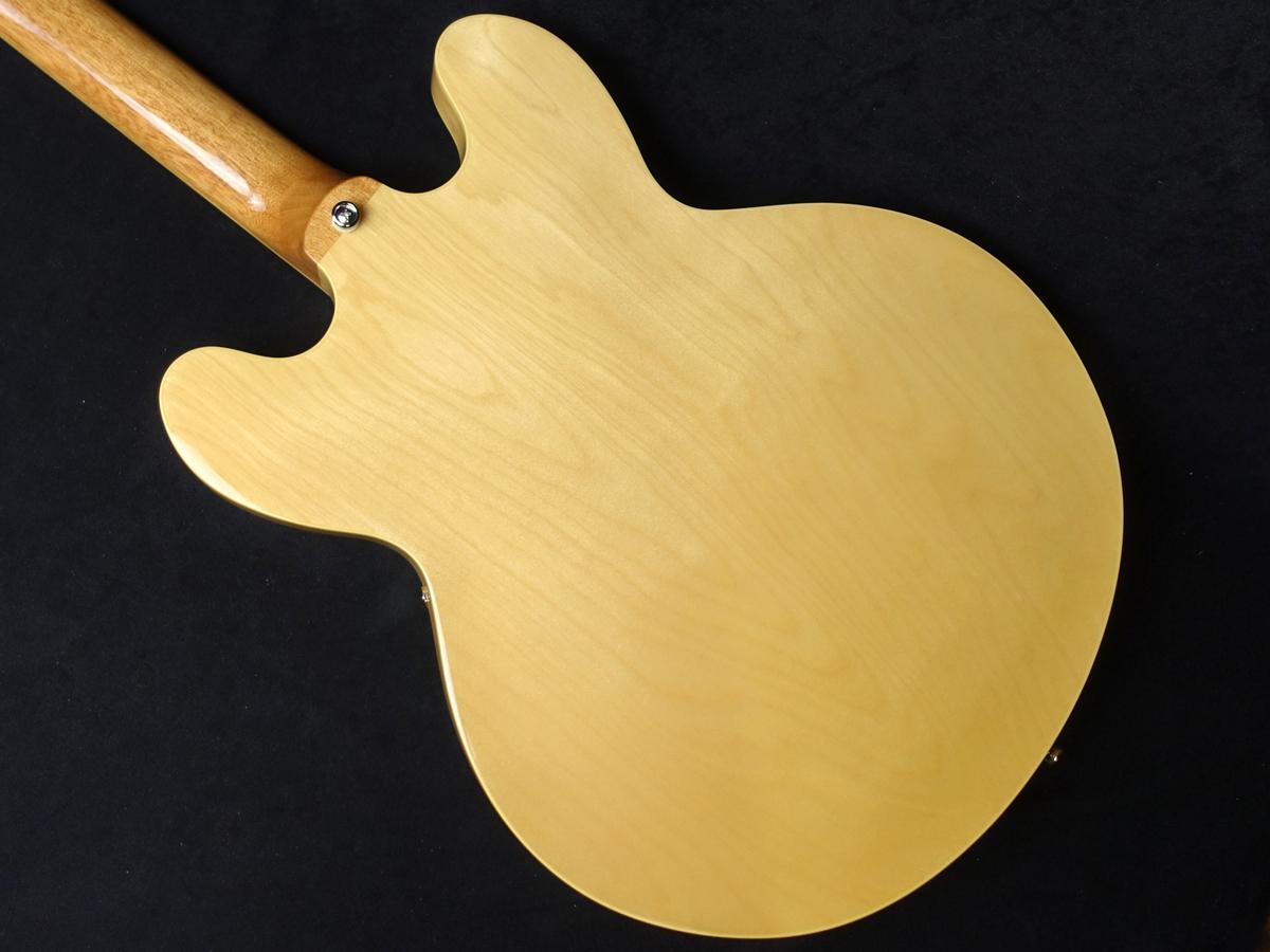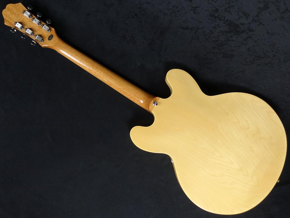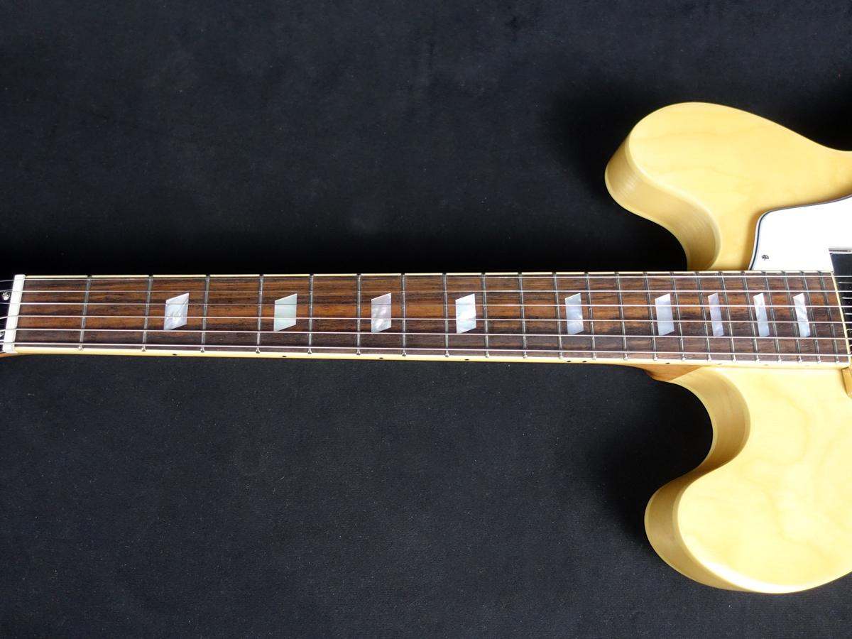 薄めのボディで一見セミアコに見えますが、センターブロックのないフルアコ構造で箱鳴り感が強いサウンドです。