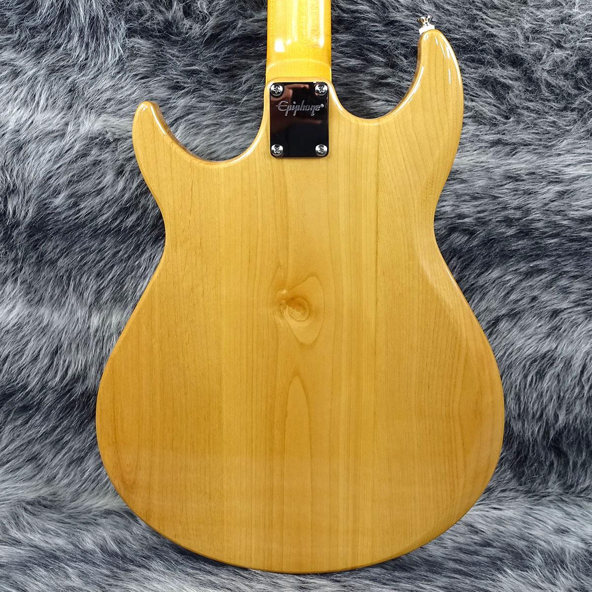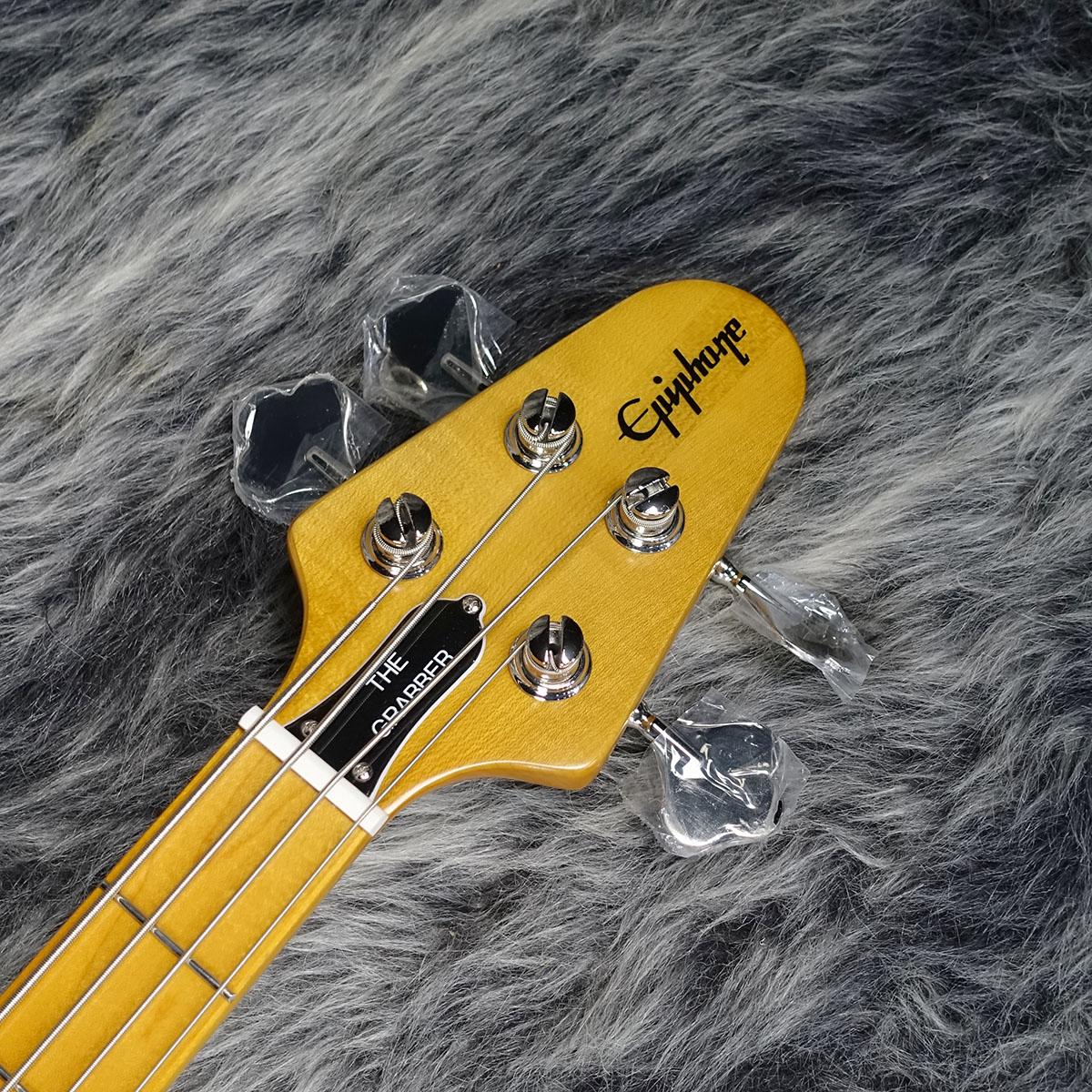 エピフォン グラバー・ベースは、3ピース・アルダーボディ、34インチスケールの3ピース・メイプルネック(20フレット)、そしてエピフォン製ベース・ハムバッカーピックアップを搭載しています。このピックアップは、唸るような低音と力強い中音域が特徴です。マスターボリューム、トーンコントロール、コイルスプリット・ミニトグルスイッチを装備し、多彩な音作りを可能にします。