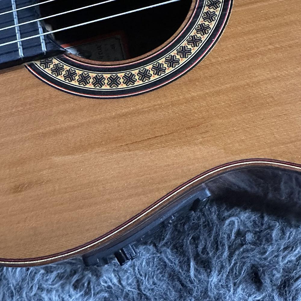 ウェスタンレッドシダートップ、インディアンローズウッドサイドバック、エボニー指板のウッドマテリアル。