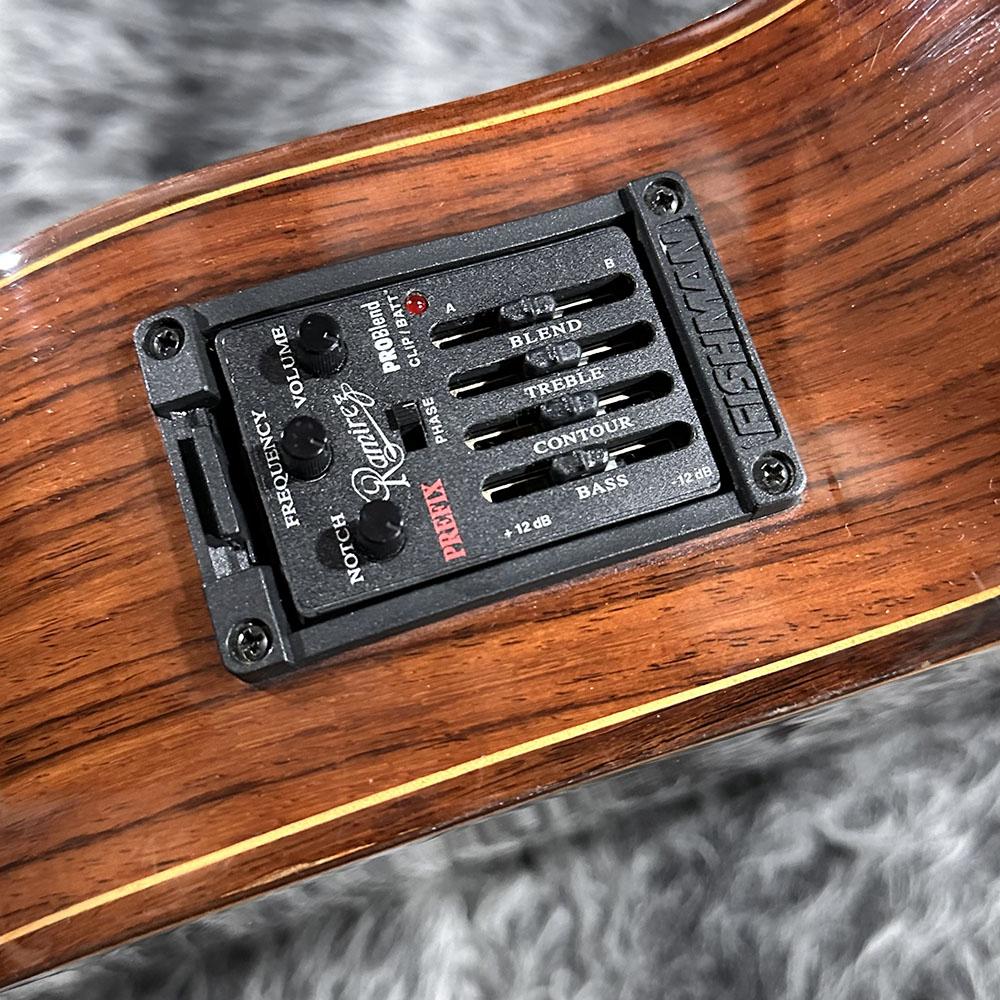 ネックはやや順反り、現状で弦高12F上6弦側4.0mm、1弦側3.5mmで気になるようなビビリはなく、演奏性には問題ございません。