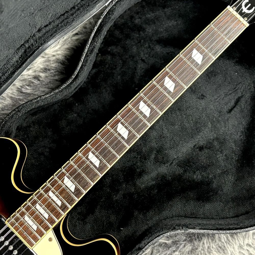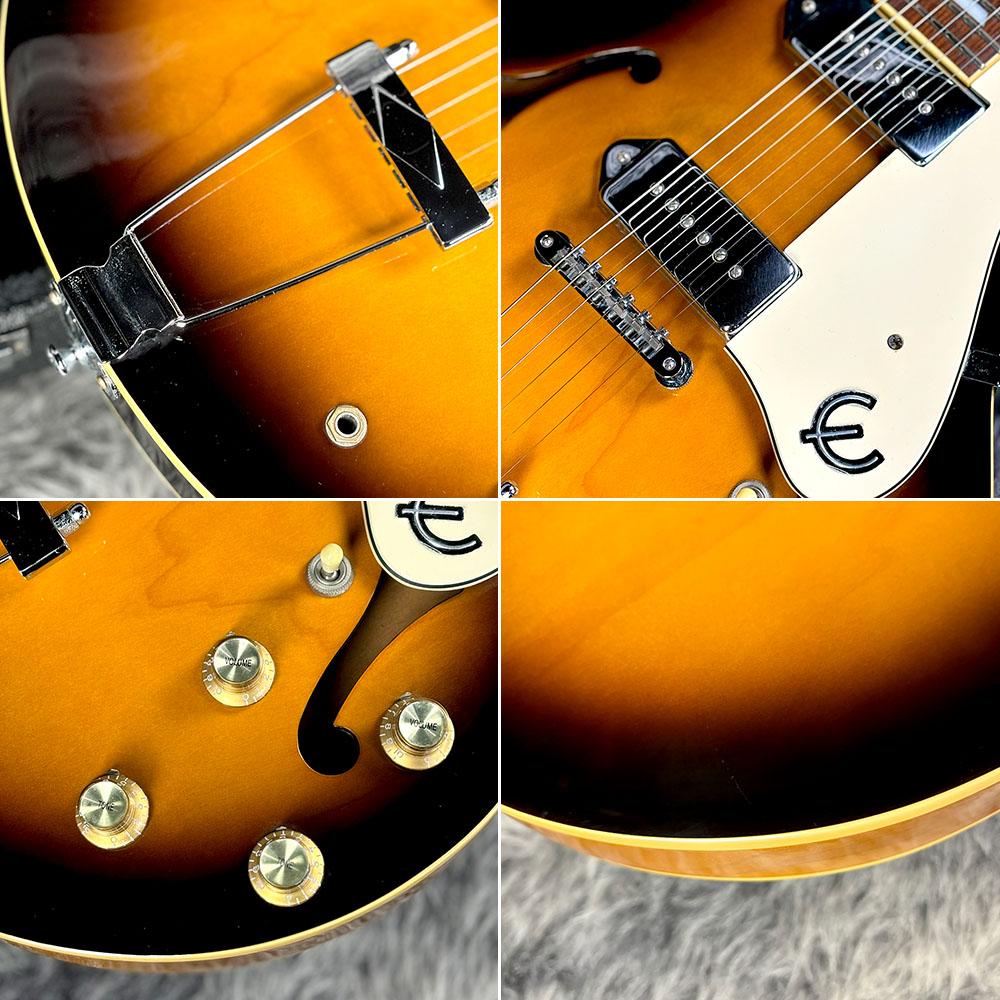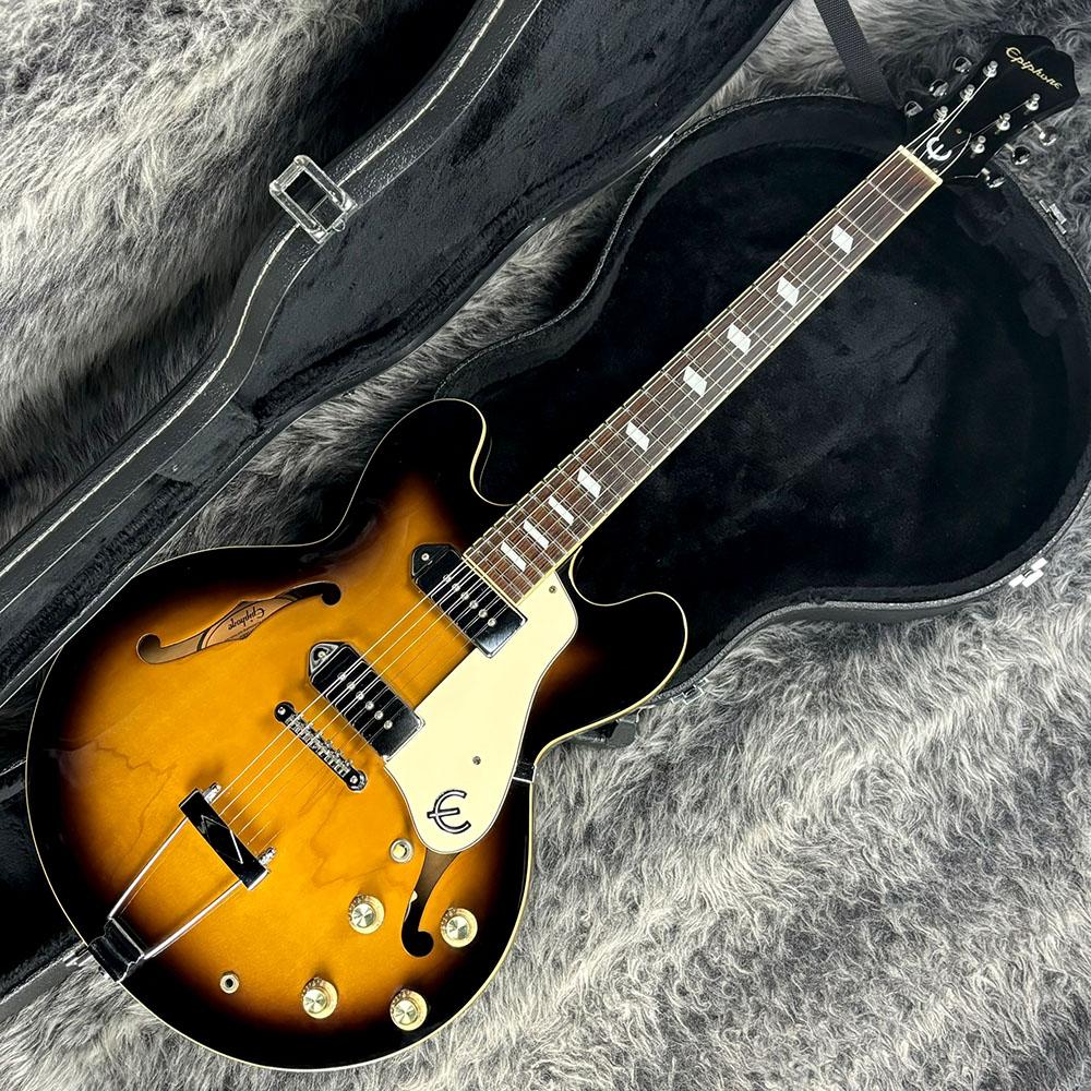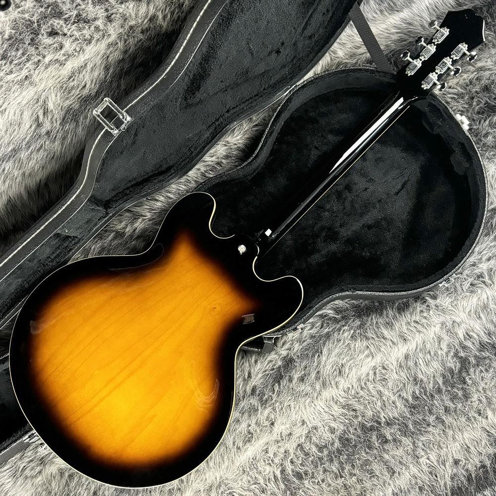 薄めのボディで一見セミアコに見えますが、センターブロックのないフルアコ構造で箱鳴り感の強いサウンド。