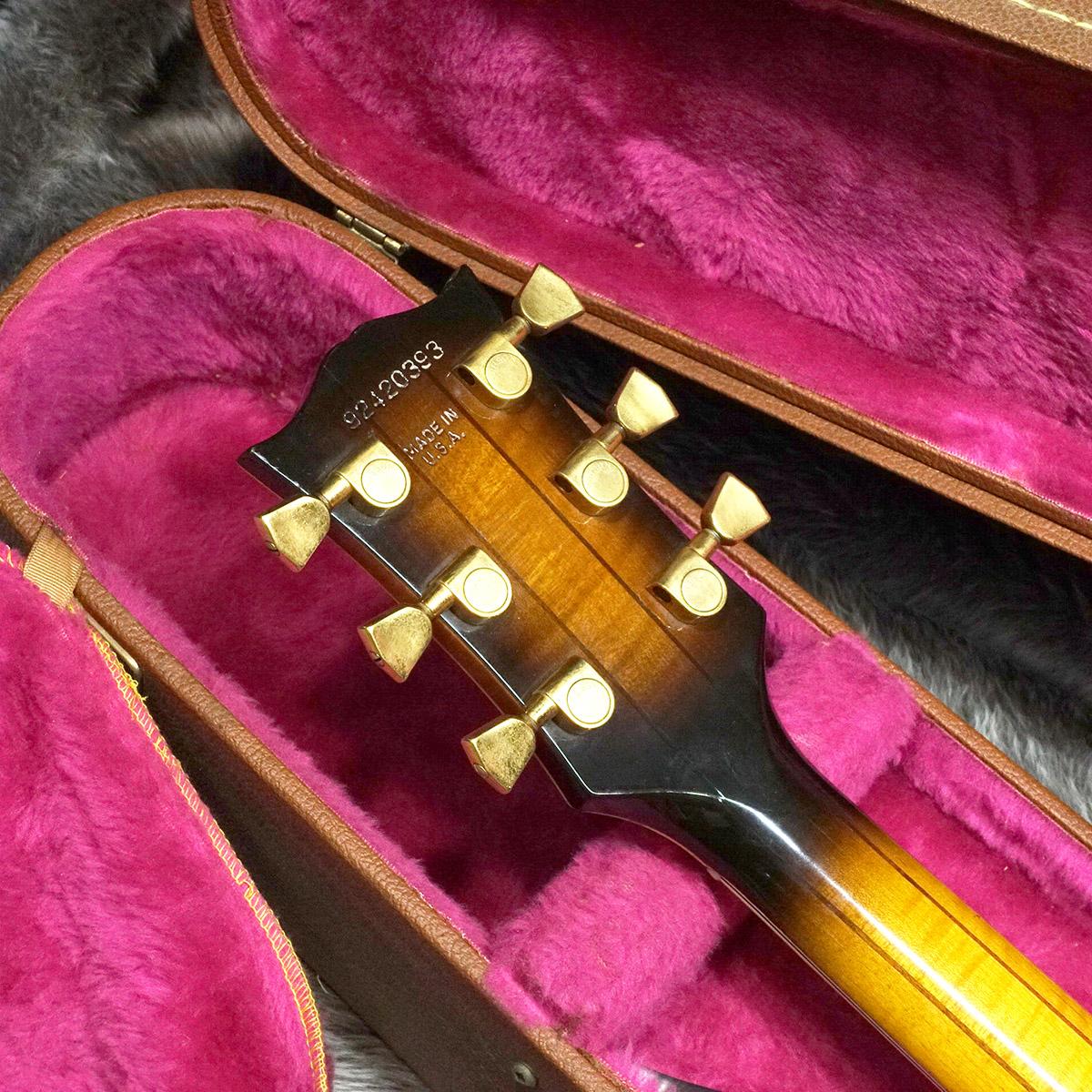 装飾はハイグレードモデルということもあり、ヘッドストックのフラワーポットインレイ、指板はブロックインレイ、マルチプライバインディング、専用バードランドテールピース等様々です。