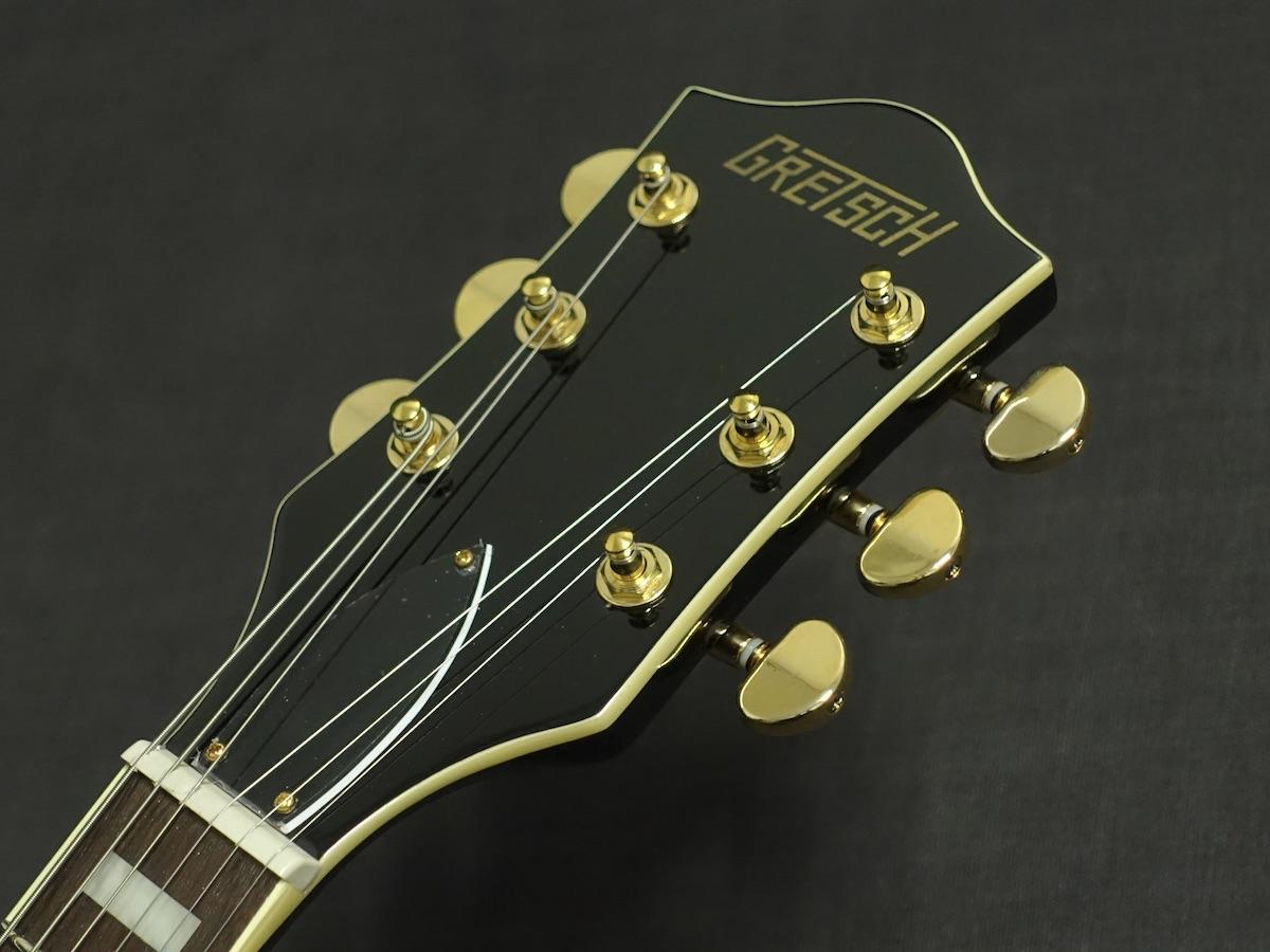 ハイ・アウトプットなハムバッキング・ピックアップBroad'Tron(ブロードトロン)を3基搭載しており、抜群なルックスはもちろん、そのユニークなトーンコントロールにより生み出される気持ちの良いミッドレンジは他プレイヤーを圧倒する事でしょう。ローレル・フィンガーボードにナトー・ネックを組み合わせ、ゴールドを纏ったハードウェアとグレッチ・ロゴを配したブラック・カラーのヘッドストック仕様となっています。