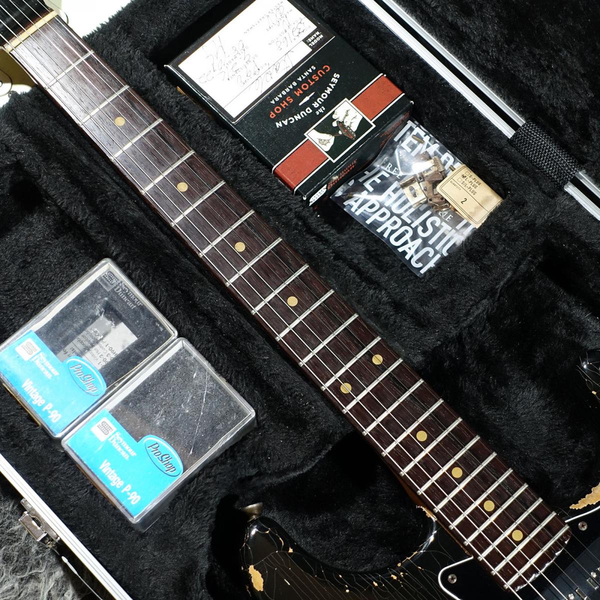3S仕様のアッセンブリ、Seymour Duncanピックアップの箱、サドル、証明書が付属いたします。