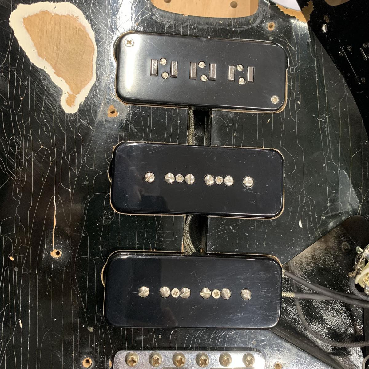 フロントピックアップに「Seymour Duncan Custom Shop P-90 Staple Soapbar 」、センターとリアに「Seymour Duncan SP90-1n」「Seymour Duncan SP90-1b」を搭載し、3wayのP.Uセレクターはフロント/フロント+リア/リアの組み合わせで、ミニスイッチをONにすることによりポジションに関係なくミドルピックアップが選択されるMiddle PU Switchも装備。