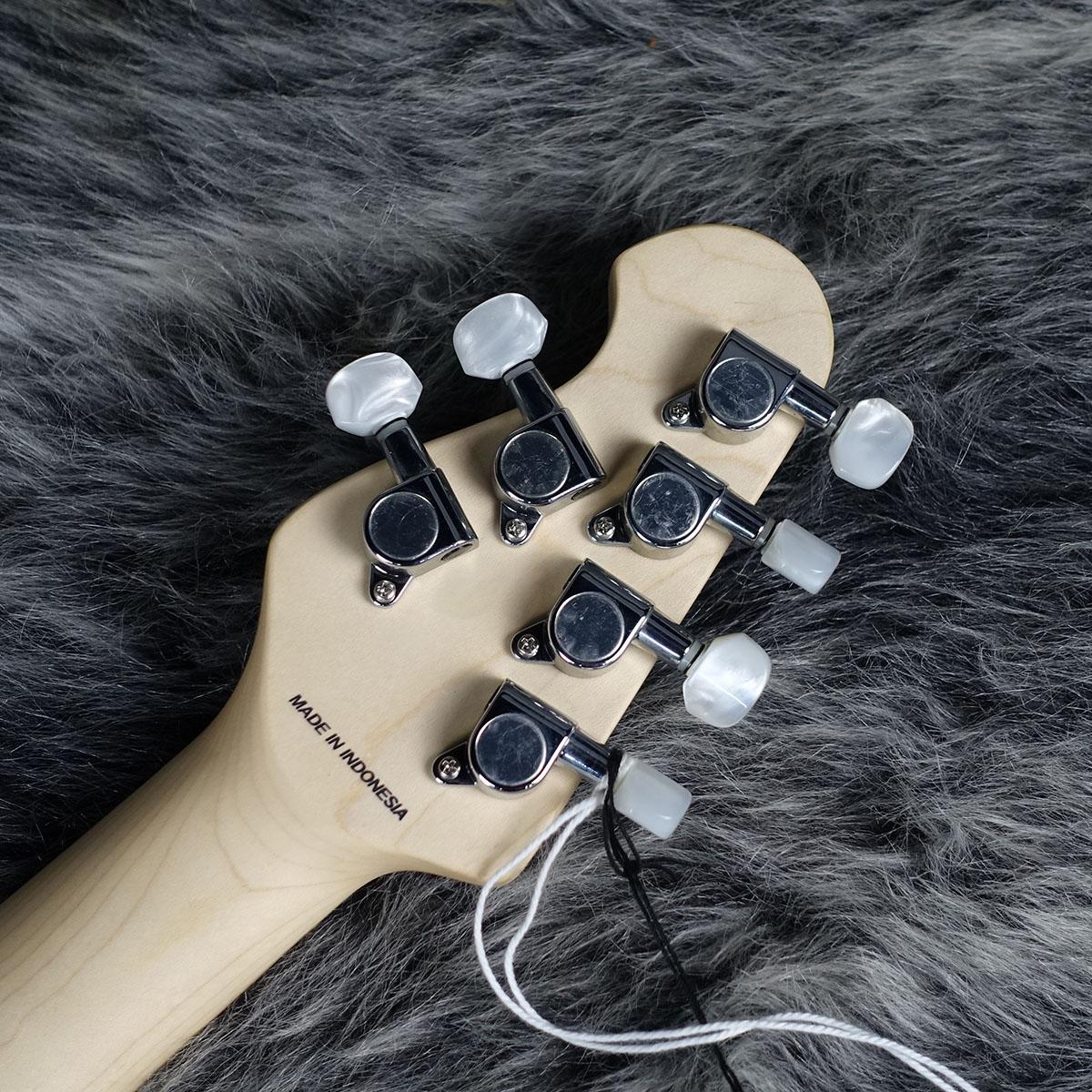 オリジナルのバスウッドボディに華やかなキルトメイプルをラミネートした華やかなルックス。
