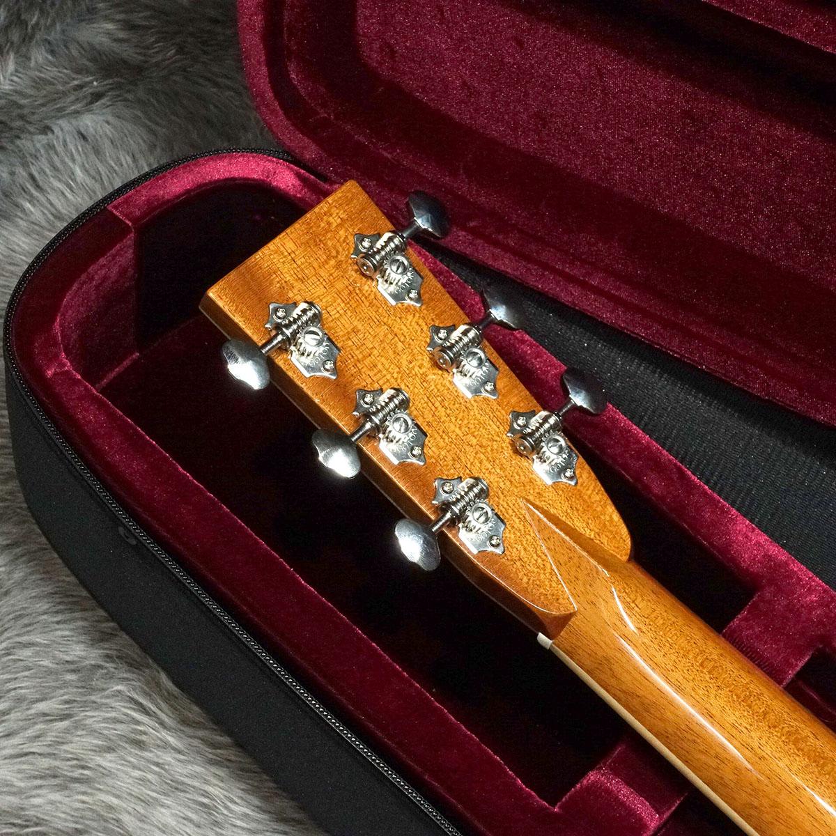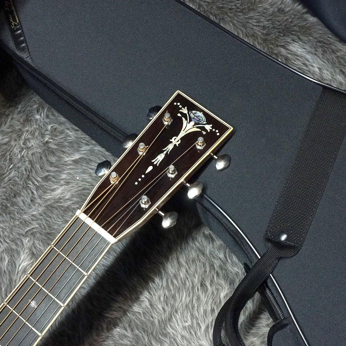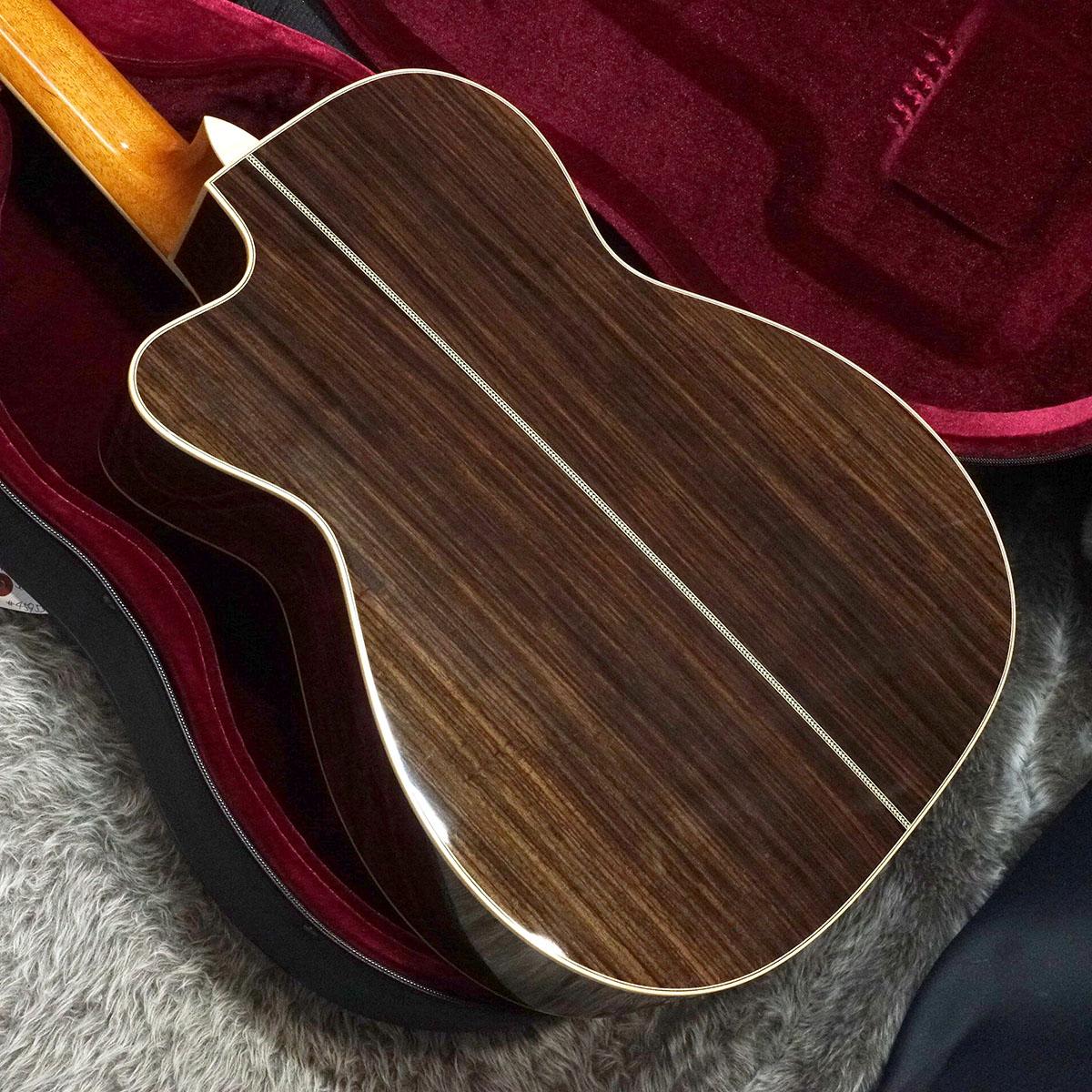 ボディはトップとバックに単板を採用し、音の立ち上がりの速さをコンセプトの一つとしている本機はフィンガースタイルだけでなく、ピックでのストロークのプレイヤーにもおすすめの一本。
