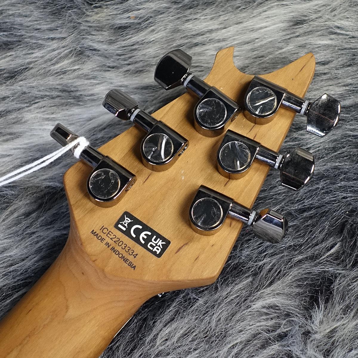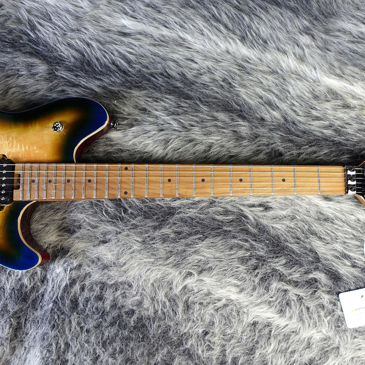 Wolfgang WG Standard Exotic Midnight Sunsetは、バスウッドボディに演奏性を最大限に高めるため特別な「コンフォート・カット」が施されています。ナチュラルなボディバインディングと、ポプラバールのトップ材が特徴的です。ボルトオン式のベイクドメイプルネックとグラファイト製の補強ロッドは温度や湿度に強く、ネックの根元には便利なスポークホイールが付いているので、トラスロッドの調整も簡単に行うことができます。