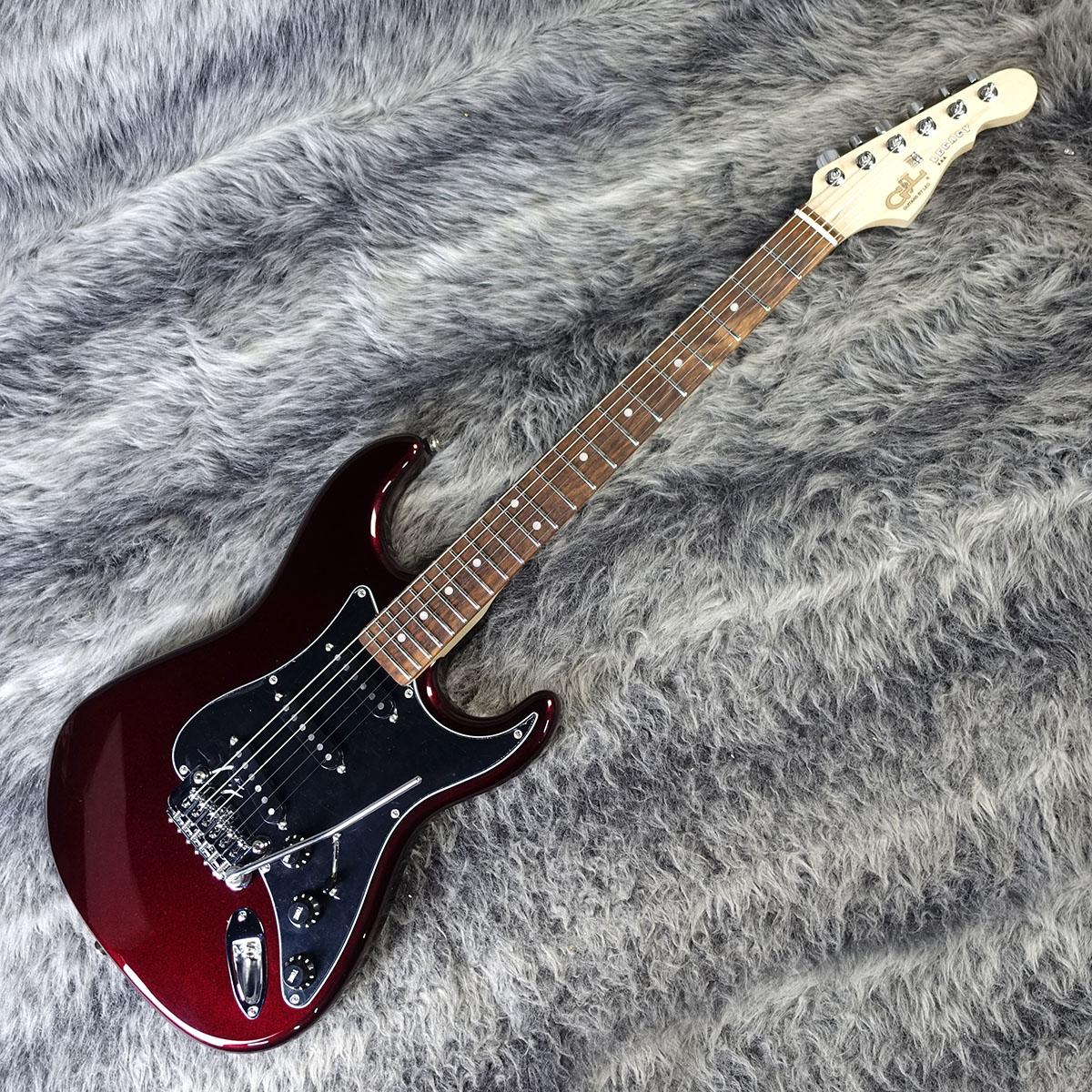 深みのある美しいルビーレッドメタリックのボディと、ブラックのピックガードやノブの相性が抜群。その他にも丸みを帯びたトレモロブリッジなどのG&Lならではの意匠が各部に際立ちます。