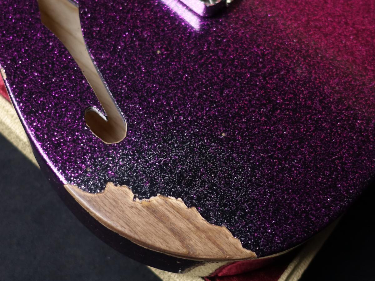 マゼンタ・スパークルフィニッシュにオールラッカー仕様、ロック式ペグ、Caballo Tonoピックガードなどまさにリミテッドエディションにふさわしい一本。