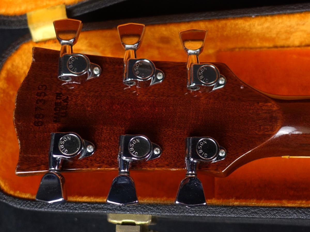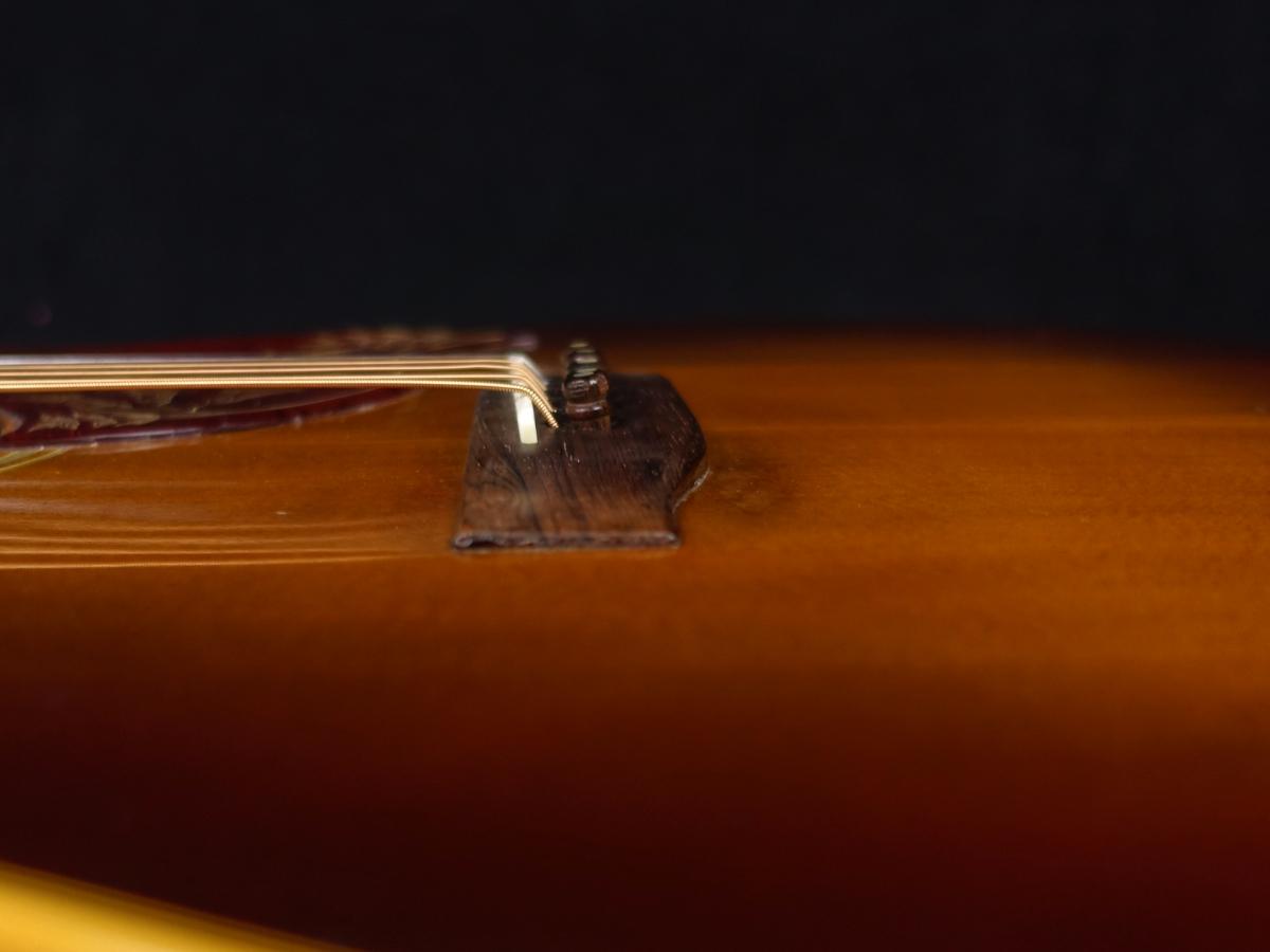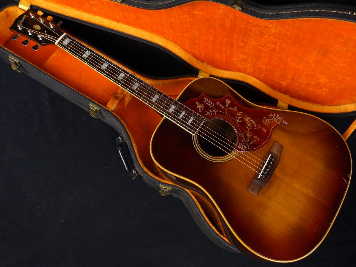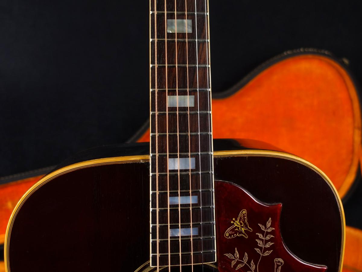 ブリッジサドルはノーマルサドル仕様、金属製のチューリップボタンのGibsonペグ、ハチドリの描かれたピックガード、またこの時期から採用されたダブルXブレイシングが採用。