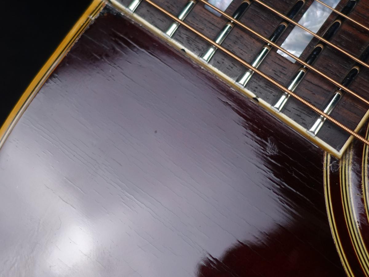 トップ浮き、全体的に散見されるウェザーチェックや打痕、弾き傷など年式相応の外観コンディション。