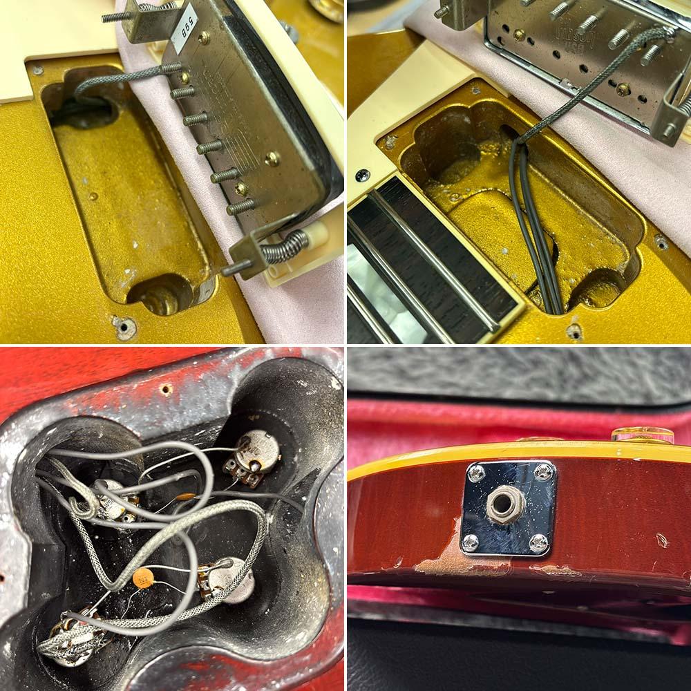 フロントピックアップはオリジナルと思われますが、リアピックアップはSeymour Duncanの59B(SH-1)に交換されています。その他ジャックプレートやストラップピン、一部のビス類も交換されています。