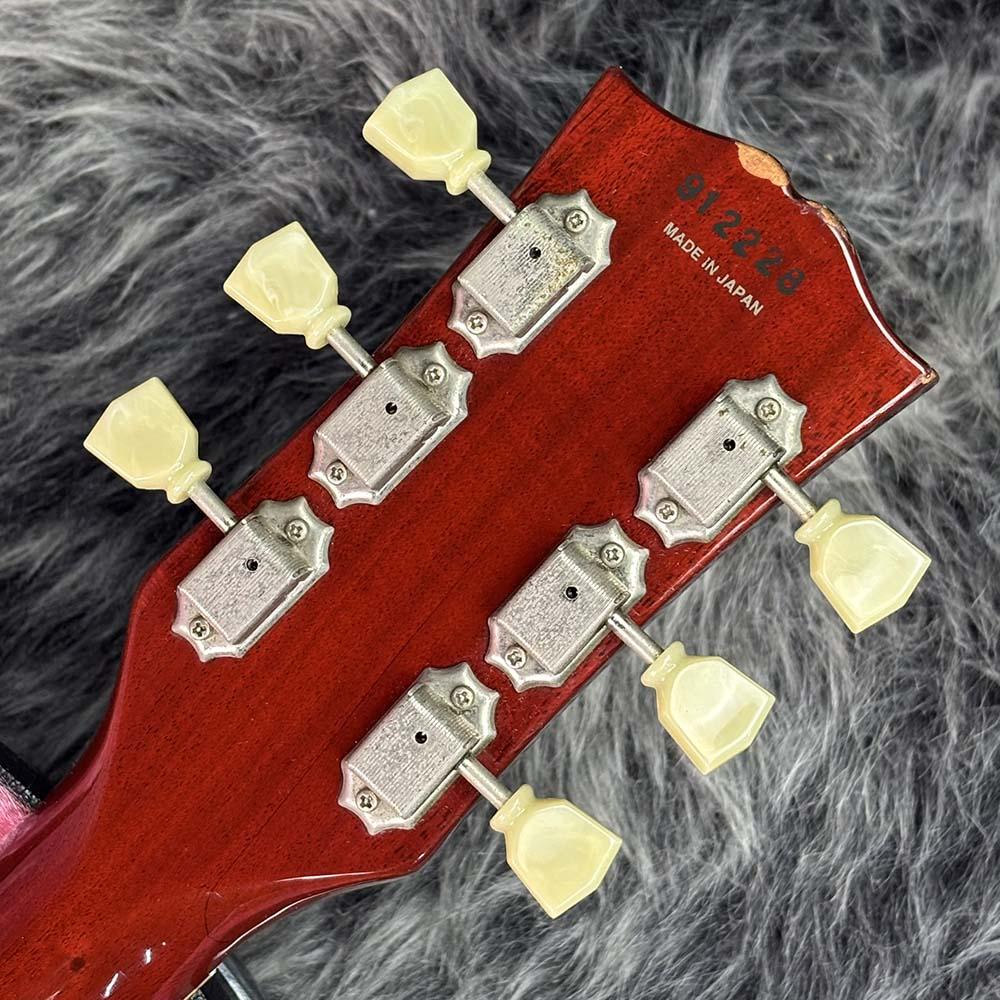 メイプルトップ、マホガニーボディにマホガニーネック、ローズウッド指板といった王道のウッドマテリアルに、リイシューモデルなどでもお馴染みのディープジョイントや本家同様ギブソンヘッドが採用されています。ややスリムなネックシェイプで演奏性も快適です。