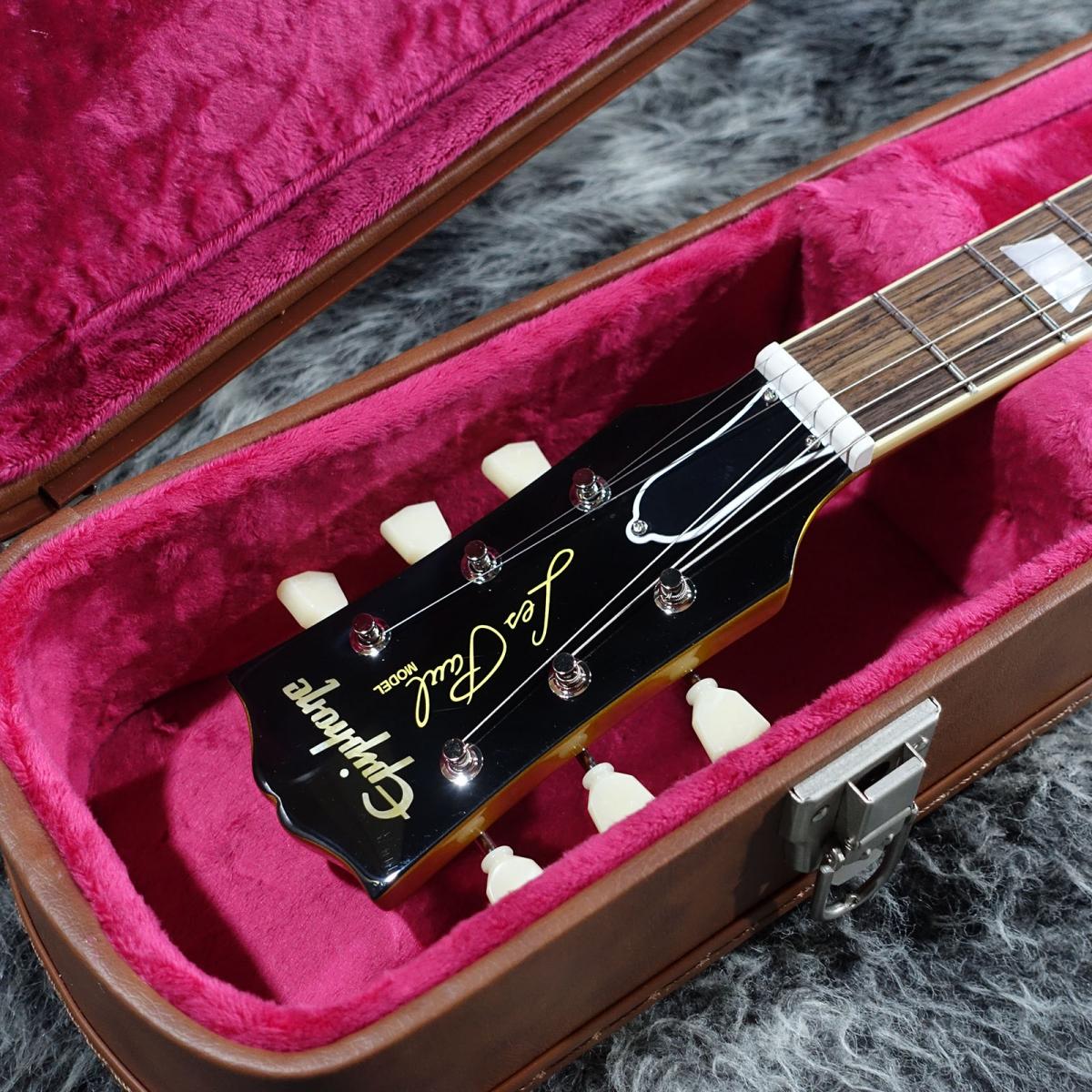 Inspired by Gibson CustomロゴとTAKのサインのレプリカがケース外側に描かれたヴィンテージスタイルの茶色(内張りはピンク)のハードシェルケースも付属します。