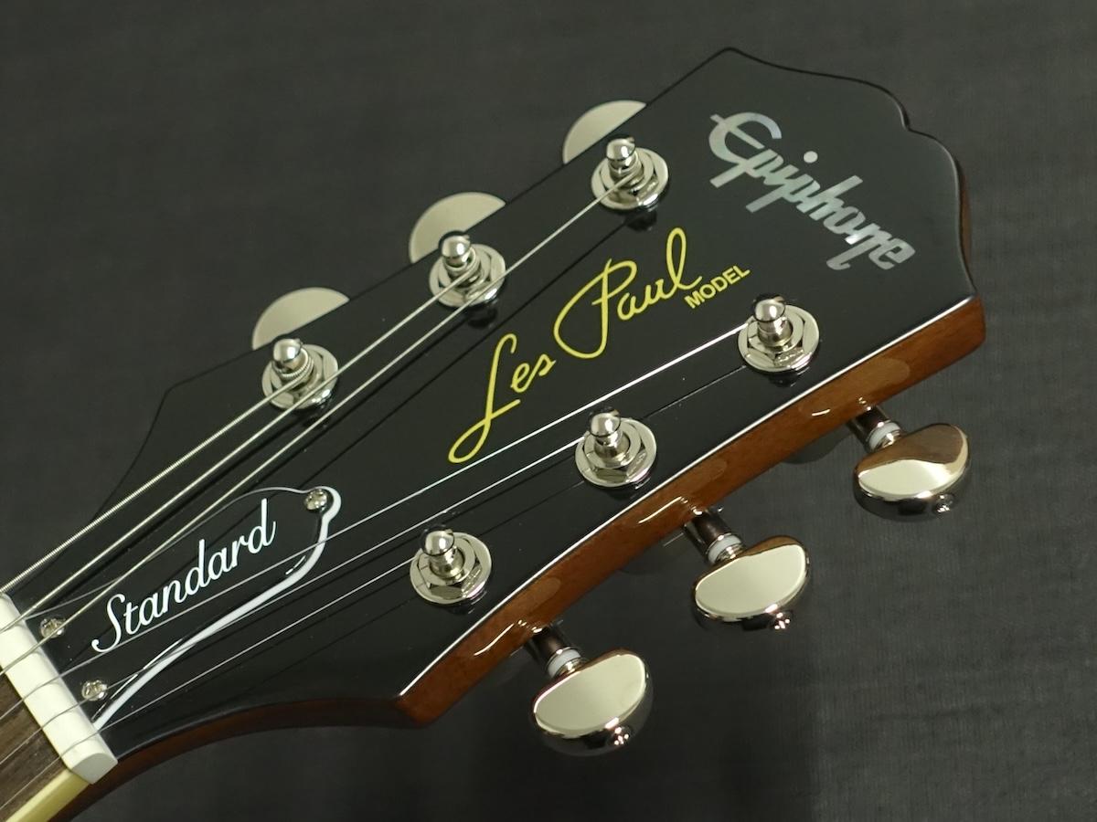 エピフォンレスポールスタンダード60sは、グロス仕上げのマホガニーボディにメイプルトップ(フィギュアドトップのモデルにはAAAグレードのフレイムメイプル化粧板)のウッドマテリアルを採用し、ロングネックテノン仕様でジョイントされた60sシェイプマホガニーネック、クラシカルなディッシュインレイが施されたインディアンローレル指板、GROVERロトマチックチューナー、定評のあるエピフォンProBuckerハムバッカー、リフレクタ付きのゴールドノブなど、充実の仕様群を誇ります。