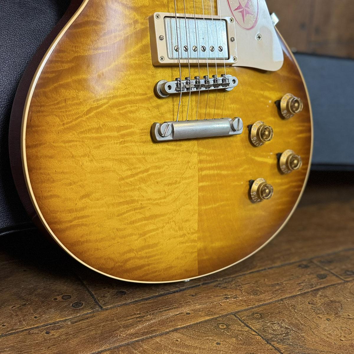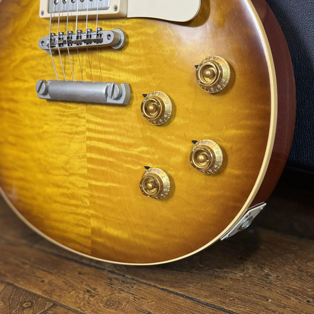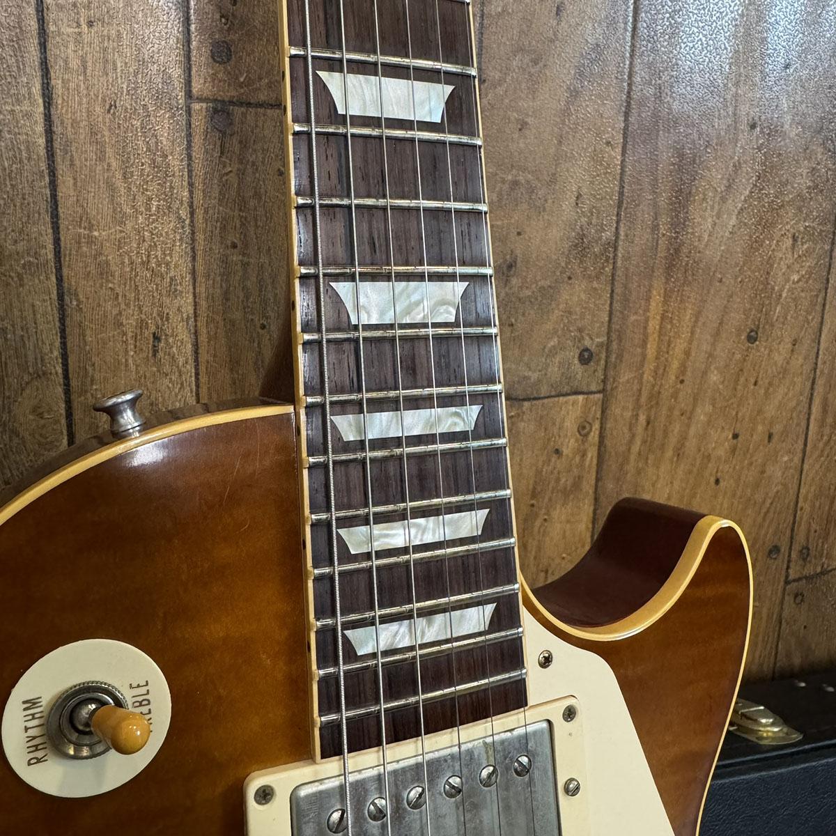 ボディトップには極上のフィギュアドメイプルが使用されており、見る角度によって表情を変える素晴らしい杢はレスポールを所有する喜びをしみじみ感じさせてくれます。