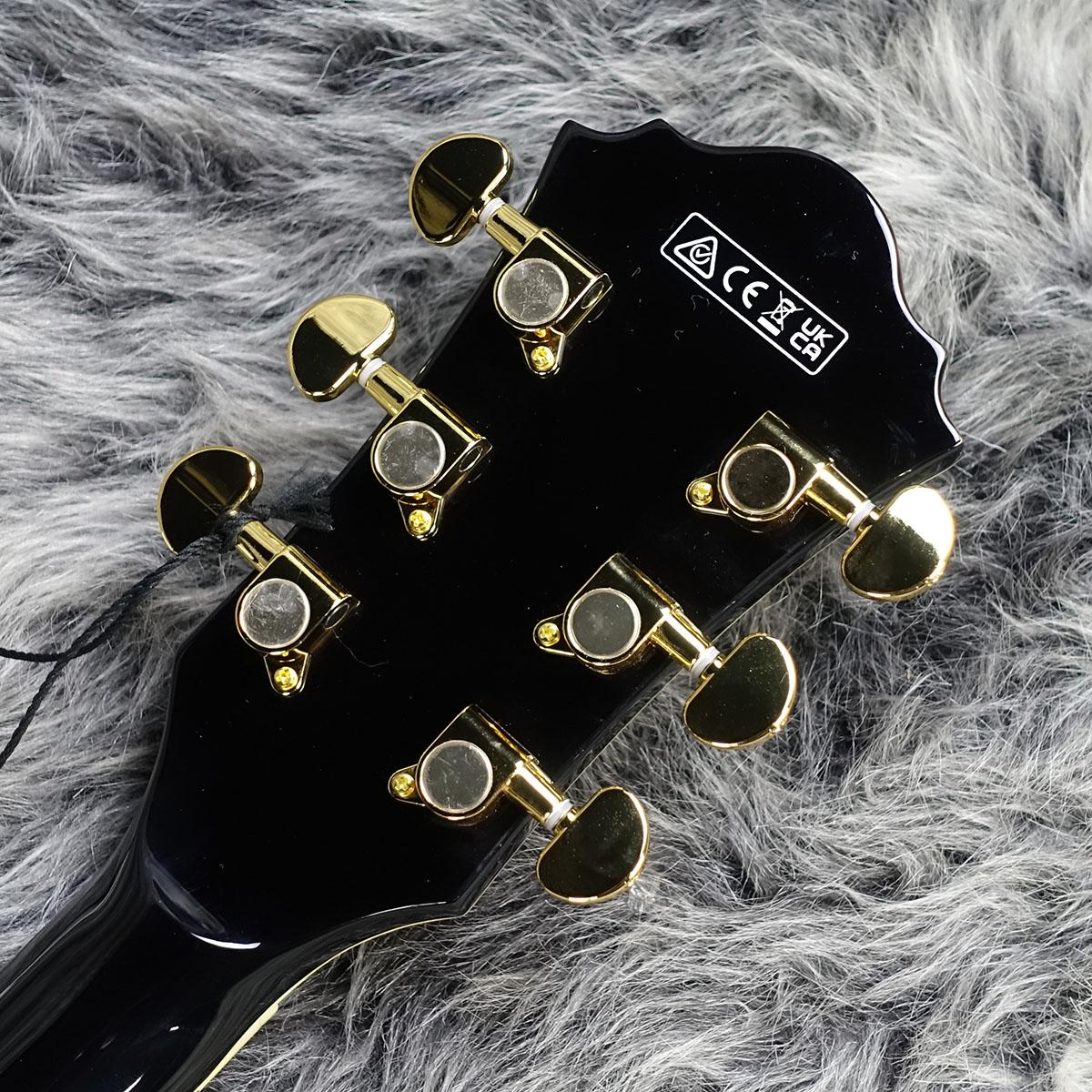 オールブラックボディに引き締まる印象を与えるバインディング、ツリー・オブ・ライフインレイ、ゴールドパーツ等が相まって高級感と落ち着きのあるルックスにまとまっています。