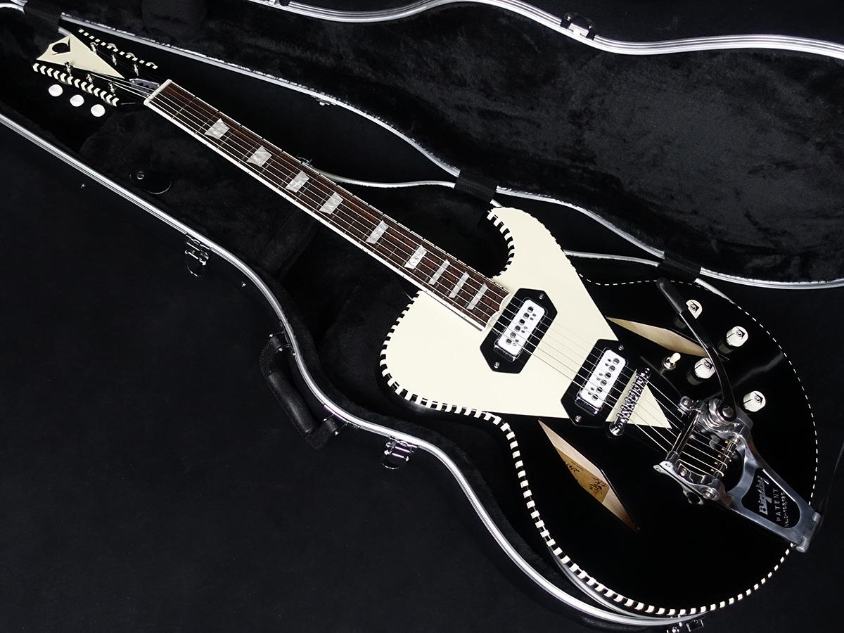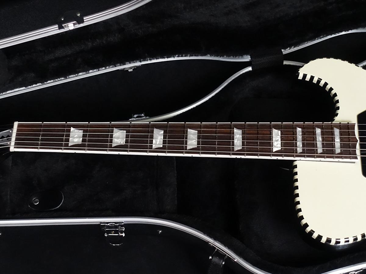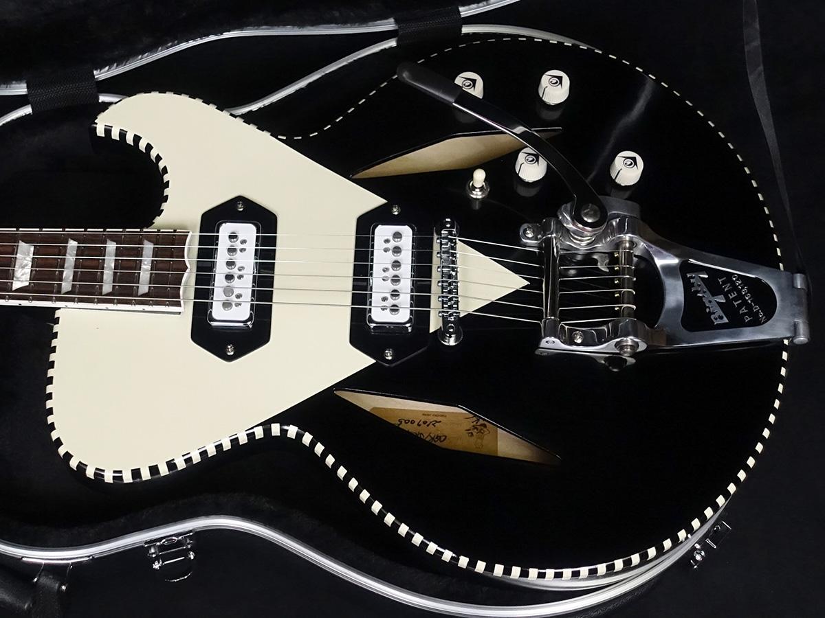 ダイアモンドfホール、そしてビグスビーのビブラートユニットB7があいまって一際目を惹く個性的なデザインのセミアコースティックギター。