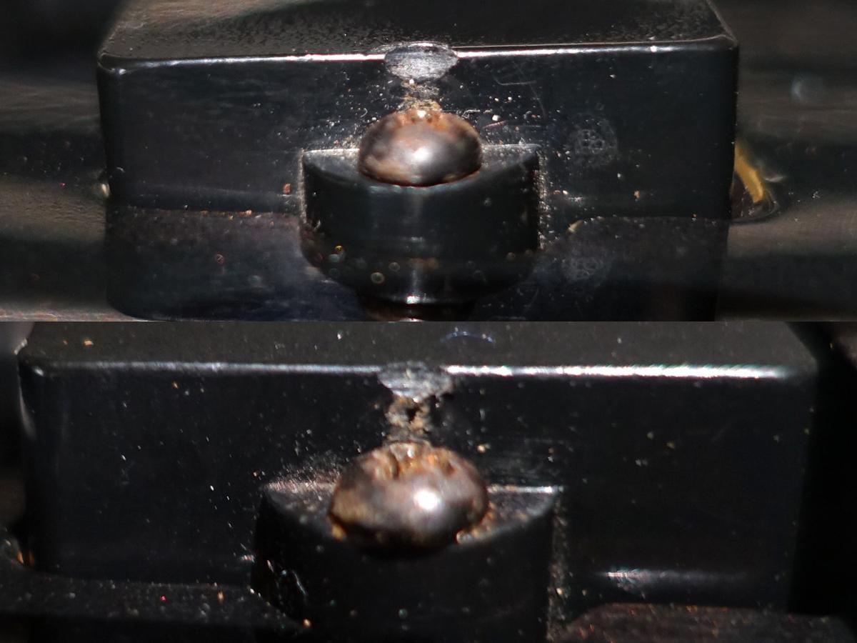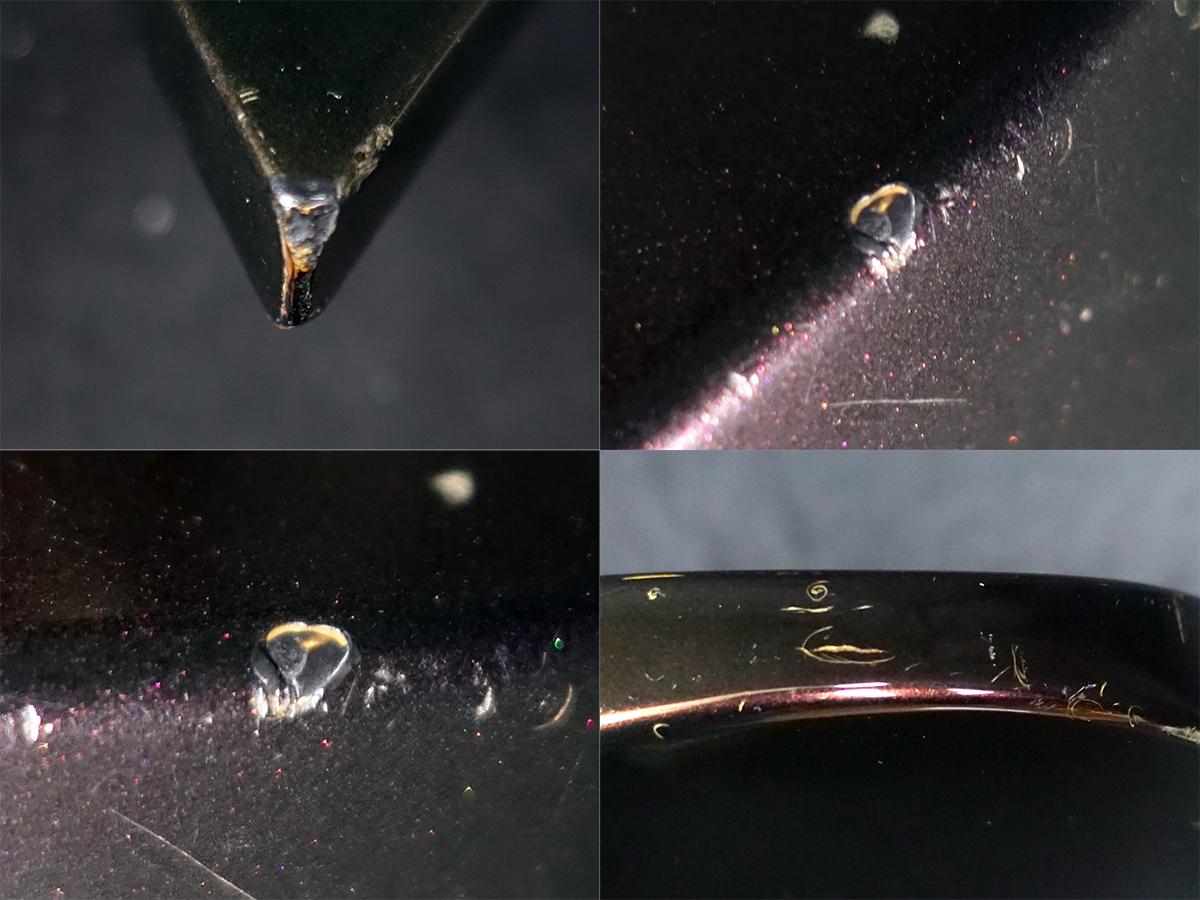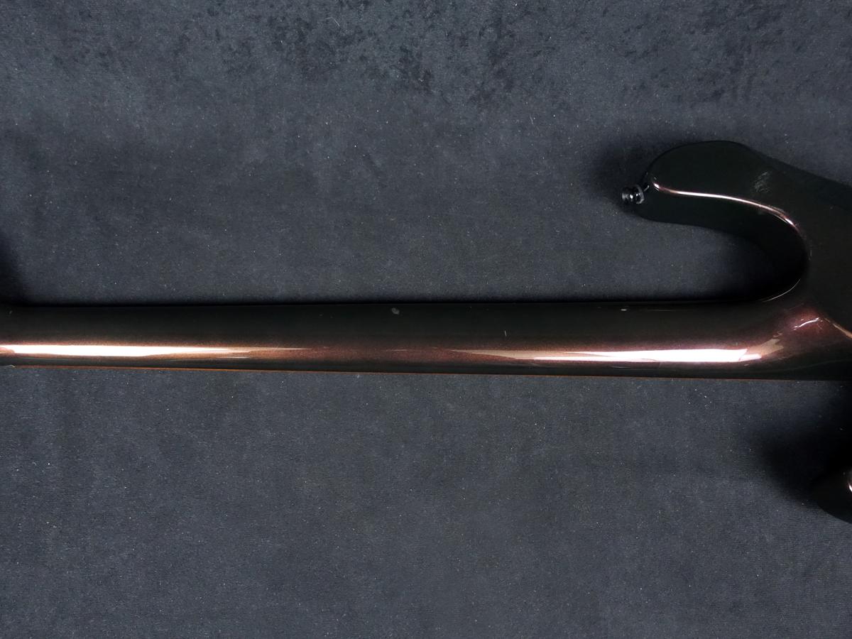 ナット両サイドに塗装チップ、フロントピックアップカバーに使用に伴うコーティングのツヤ感・ビスが干渉したと思われる擦り傷等が見受けられる他、ポツポツと打痕などの小傷や擦り傷、パーツのくすみや木部の露出を伴う塗装欠け等、全体的に年式相応の使用感が見受けられます。