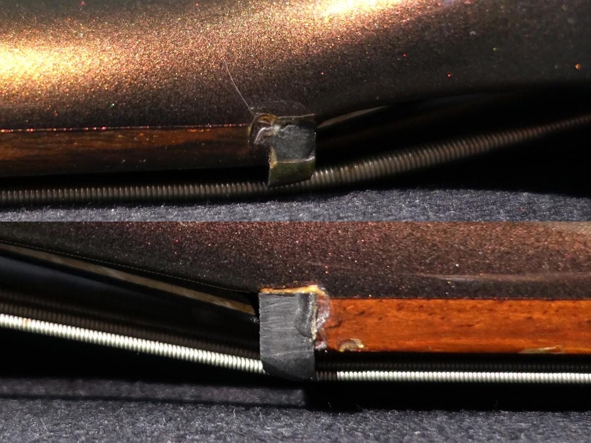 目視で確認できるようなフレットの凹みや消耗は見受けられず、6割としっかりと高さを残しており、気になるようなビビりや音詰まりなく演奏していただけます。