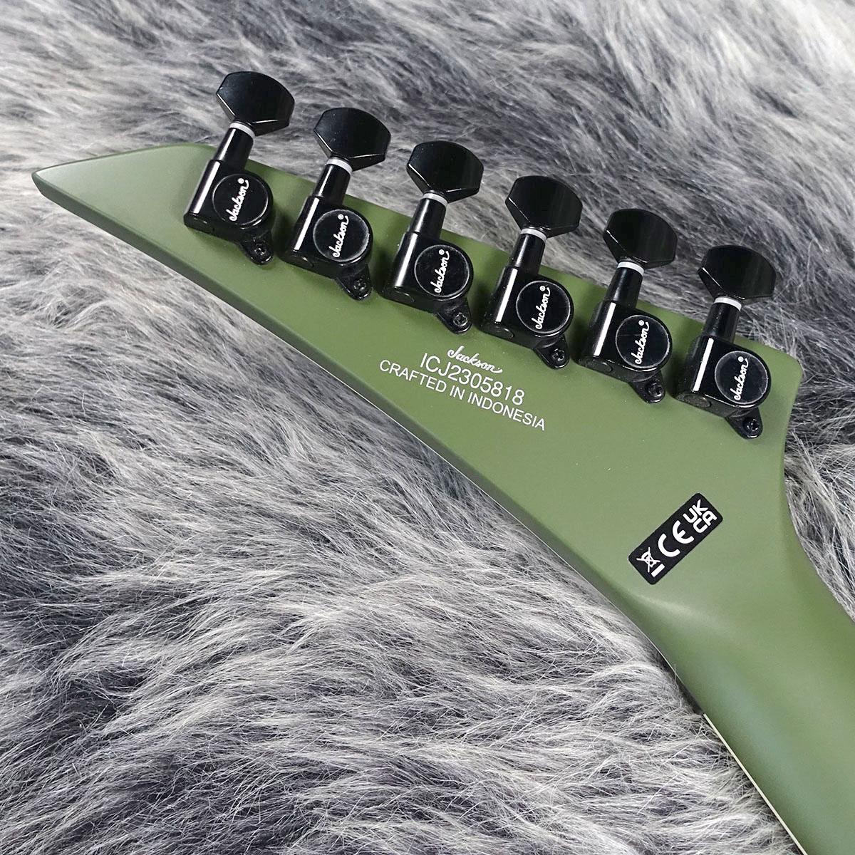 X Series Soloist SL3X DXは、Jacksonの伝統的な仕様となるブラックハードウェア、Knurled Domeコントロールノブ、耐久性のあるボディフィニッシュ、パーロイドシャークフィンインレイ、6連ペグ式コンコルドヘッドを採用しています。