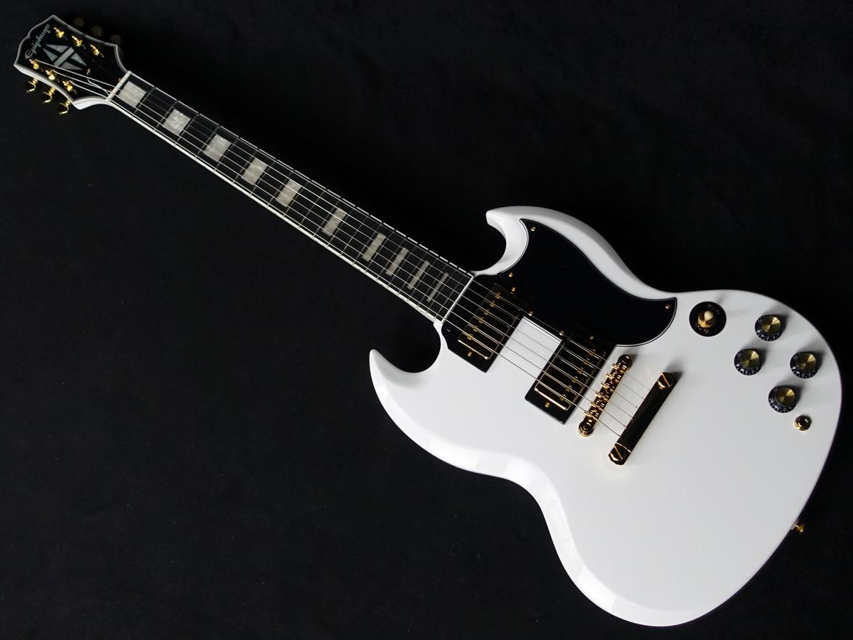 エピフォンSGカスタムは、エボニー指板、LPカスタム・スタイルのインレイ、ゴールド・ハードウェア、CTSエレクトロニクス、アルニコ・クラシックPROハムバッカーといった充実の仕様を誇ります。