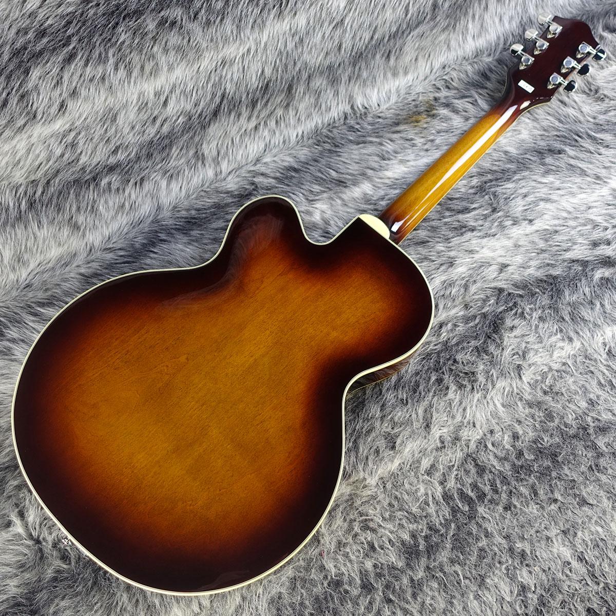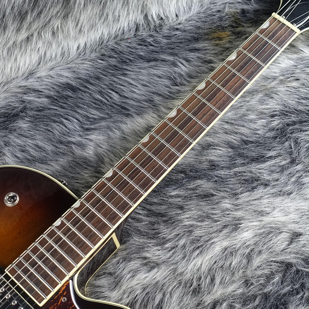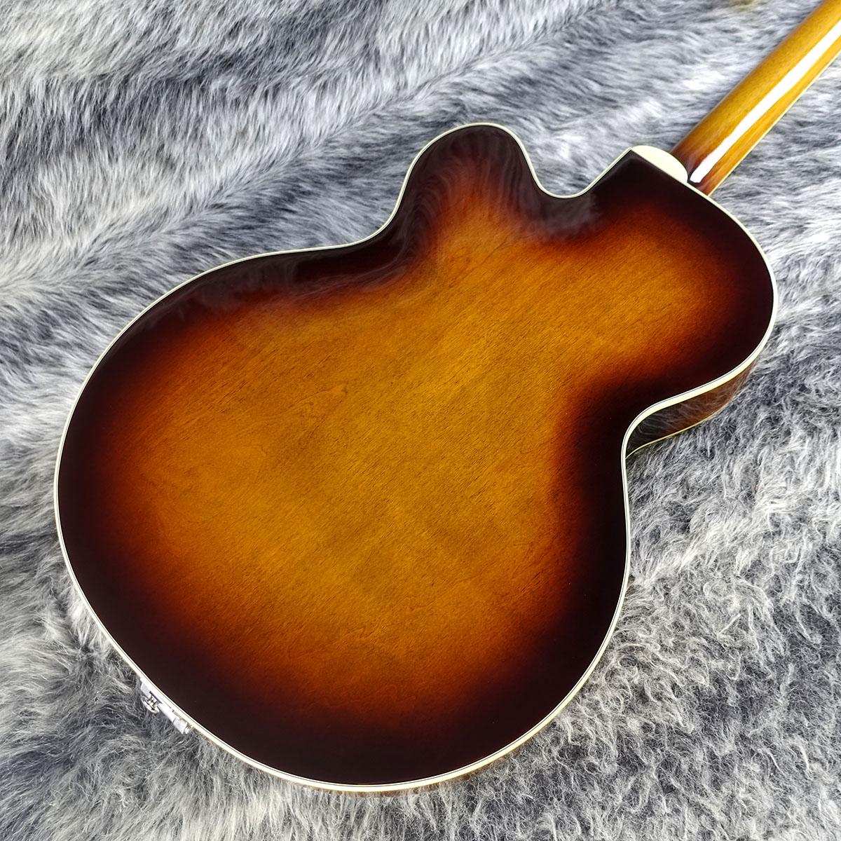アーチ状のラミネートメイプルボディに、3プライのベッコウ柄ピックガードを装備しています。
