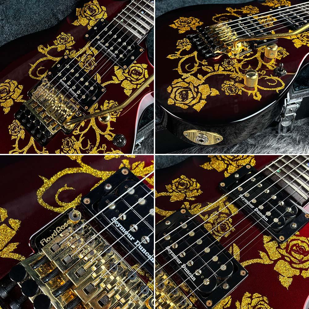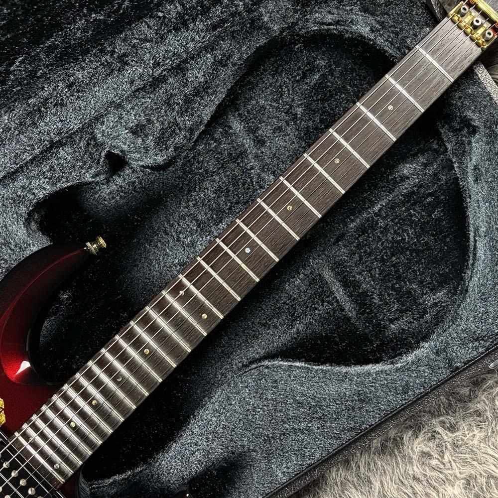 指板はホンジュラスローズウッドで、12フレット~24フレットにはスキャロップ加工が施されています。