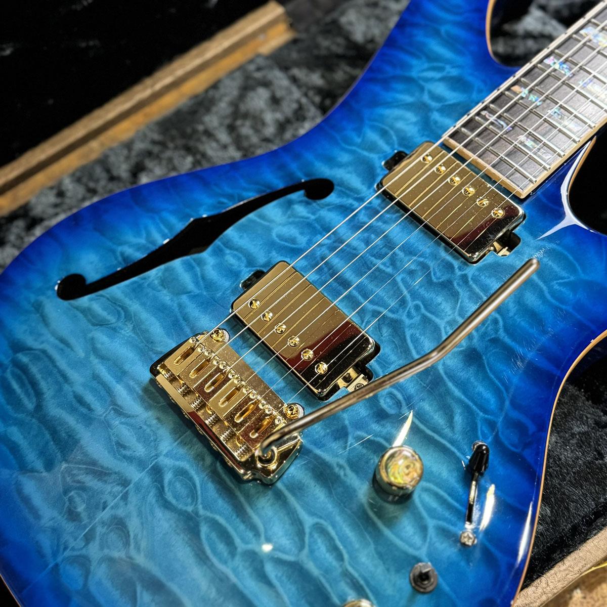 アヴァロントップのコントロールノブやGotoh最高峰の510チューナー、木製トラスロッドカバー等コダワリのスペックが詰め込まれています。
